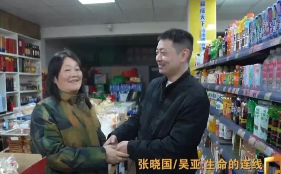 超市店主童善霞(左)与救命恩人张晓国(右)。(图:央视新闻)
