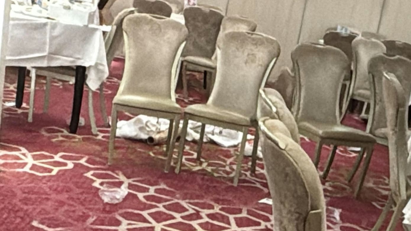 当地记者所见,酒楼内一片狼藉,现场还有一条沾满鲜血的桌布。