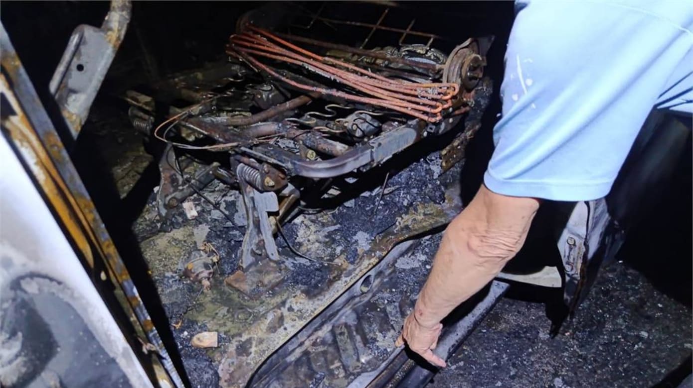 其中一名消防员表示,火势迅速蔓延,整辆车乎被烧毁,仅剩外壳和铁架。初步调查发现,火势疑似自车内向外延烧,车厢内部烧损严重,与一般因引擎过热导致的车辆起火情形不同。现场还发现疑似燃烧后的铁盆。