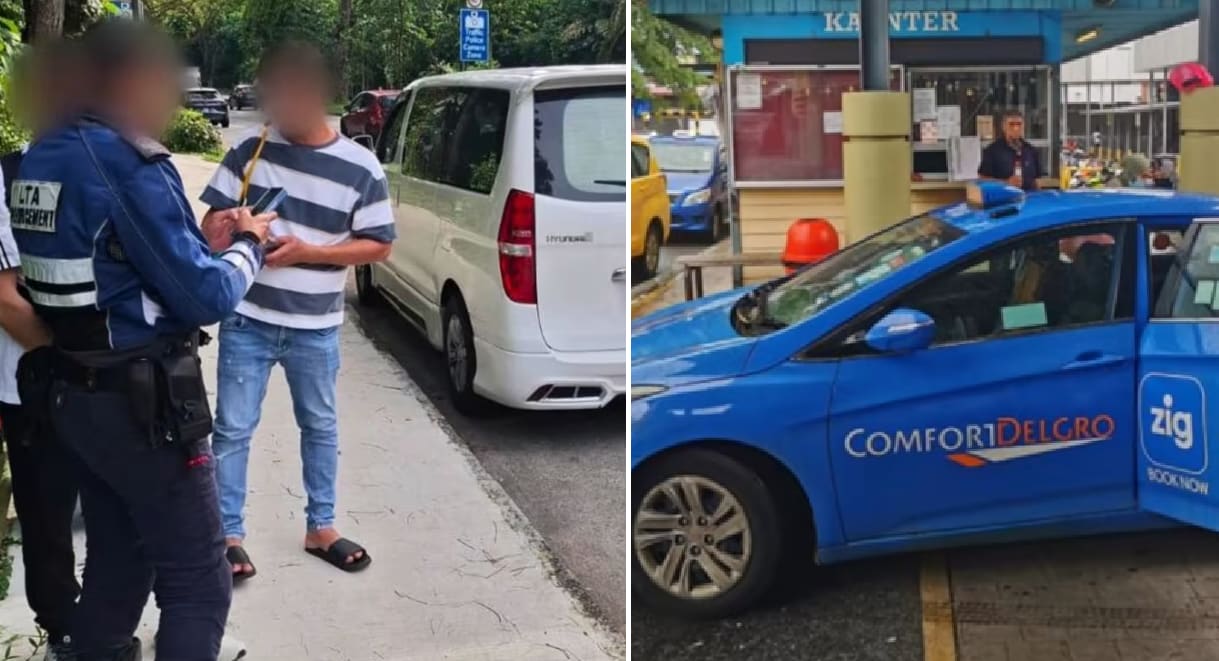 陆交局严打非法跨境载客服务、一辆本地注册的德士抵达新山拉庆车站。(图:Facebook/Land Transport Authority、CNA/Amir Yusof)