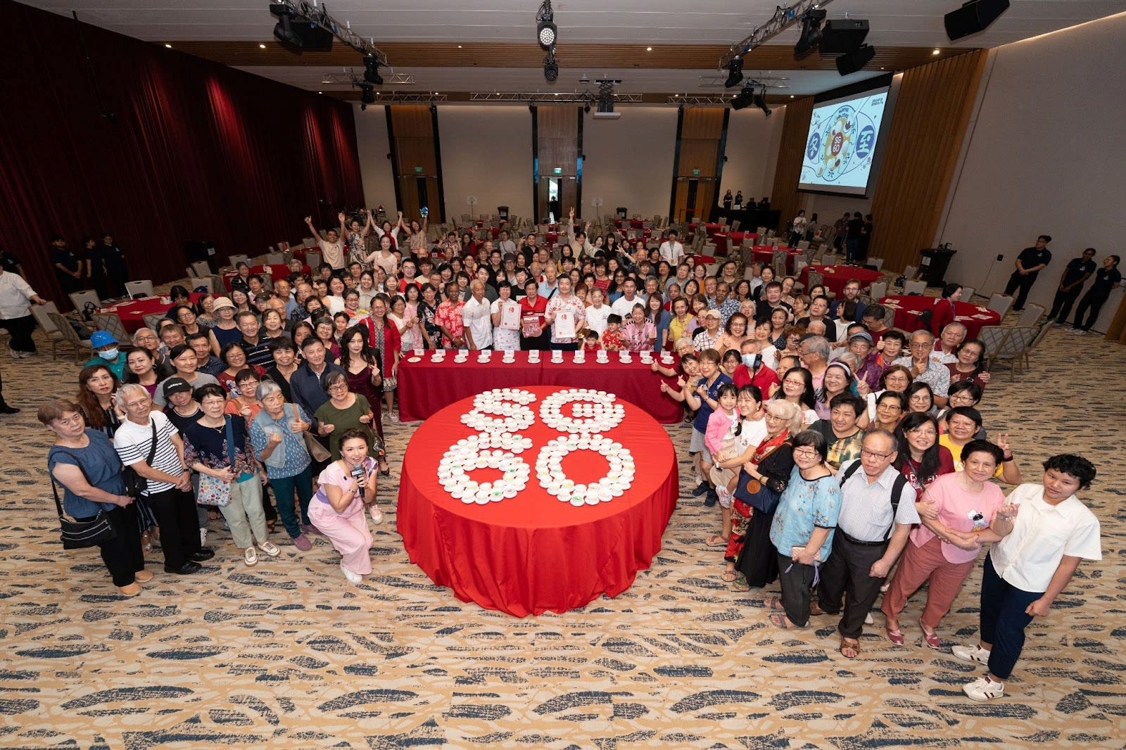 新加坡华族文化中心主办冬至庆祝活动,制作出最多种类的汤圆,和组成最大的SG60标志,写下新加坡纪录。(图: 新加坡华族文化中心)