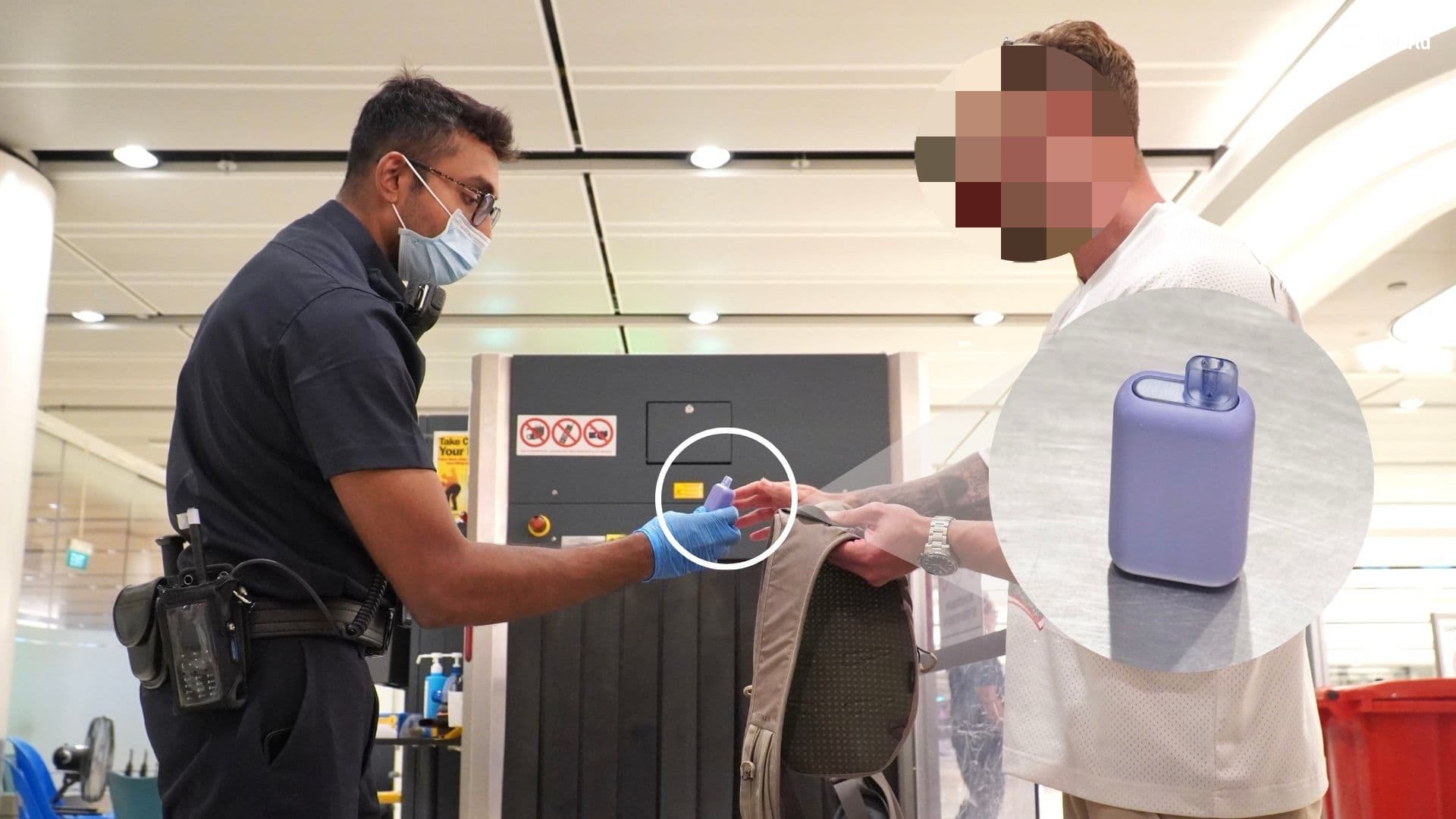 旅客上交电子烟给移民局人员。(图:刘伟聪)
