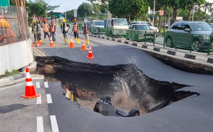 今年7月,丹戎加东南路与蒙巴登路交界处发生路面塌陷事故,一辆轿车坠入形成的坑洞,女司机受困车内,随后在现场客工的协助下被救出,并被送院治疗,部分道路一度关闭。客工英勇救人的事迹也被社会各界广泛歌颂。事件引起公众关注,也引发对道路安全的疑问。