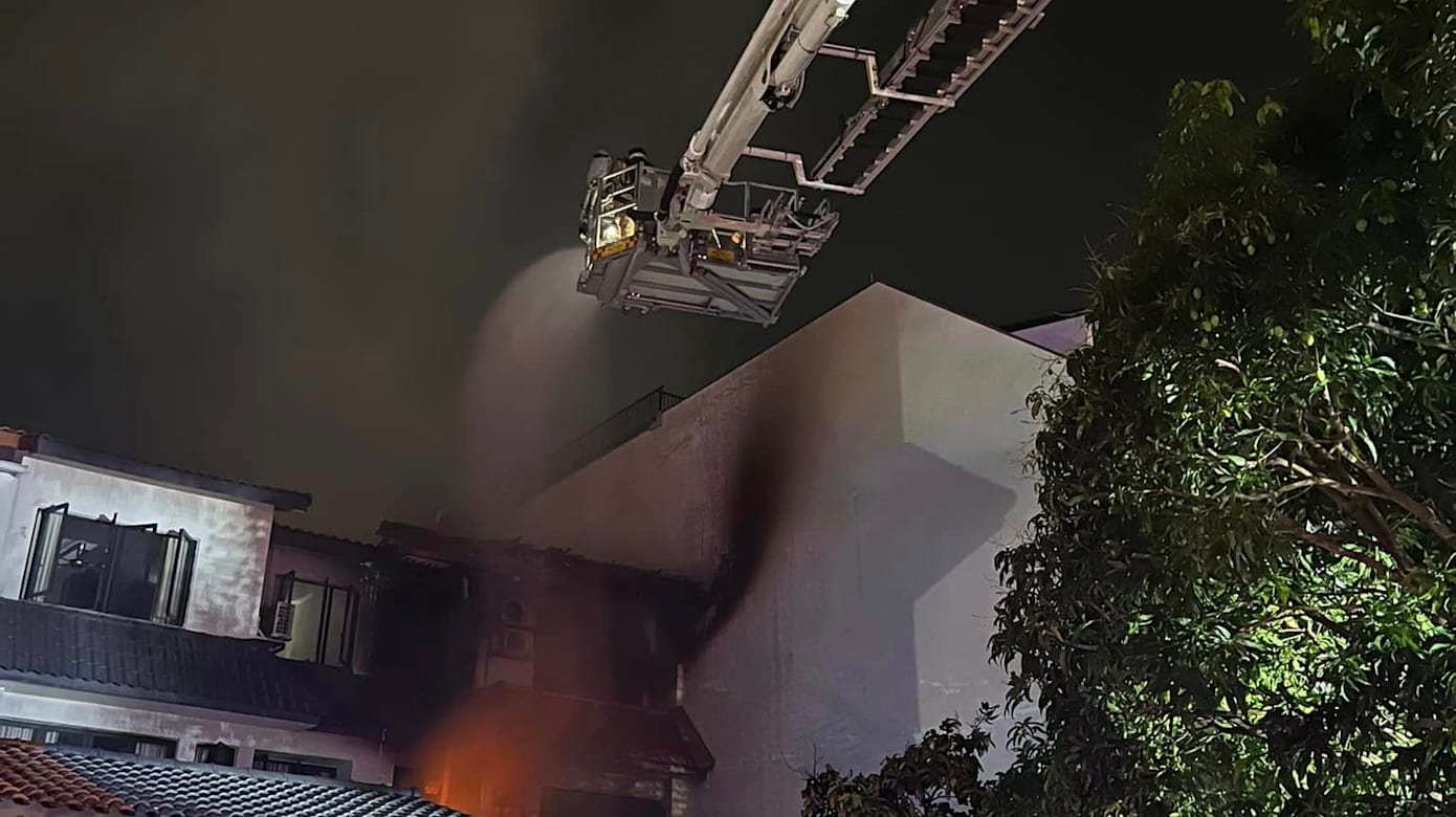 东海岸路一栋空置的三层半独立式洋房凌晨起火狂烧,大约35名居民被疏散。