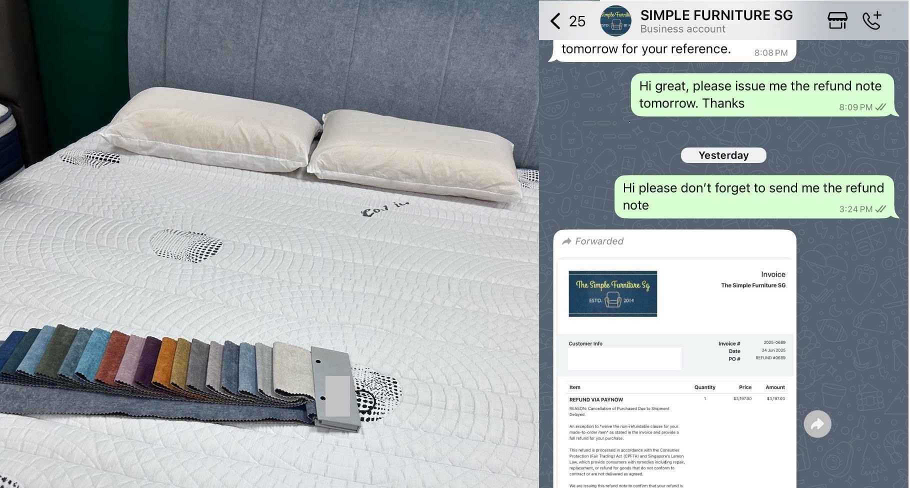 这家被投诉的公司是The Simple Furniture。买家表示,在Tiktok上看到这家公司推销家具,网民评语也不错,就到他们位于兀兰的展销室参观,挑选家具,对方要求他们全额付款才能正式下单。