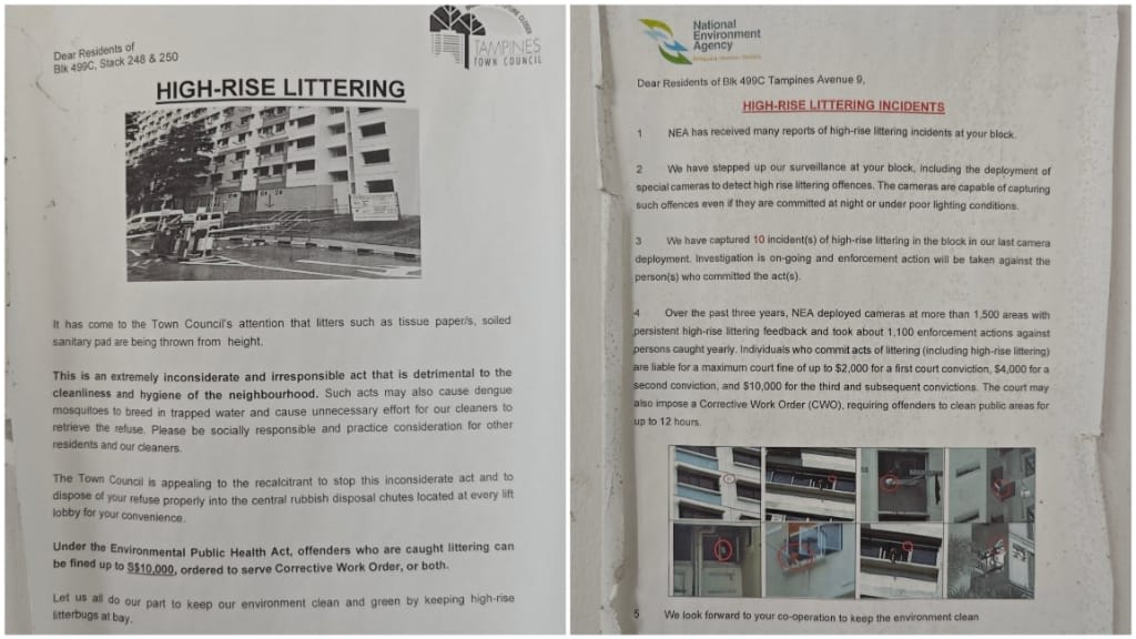 市镇会的通告则特别针对该座两个单位的居民,写道高楼抛物的行为十分不负责任,影响社区的卫生和整洁,呼吁涉事者把垃圾扔进垃圾槽里。