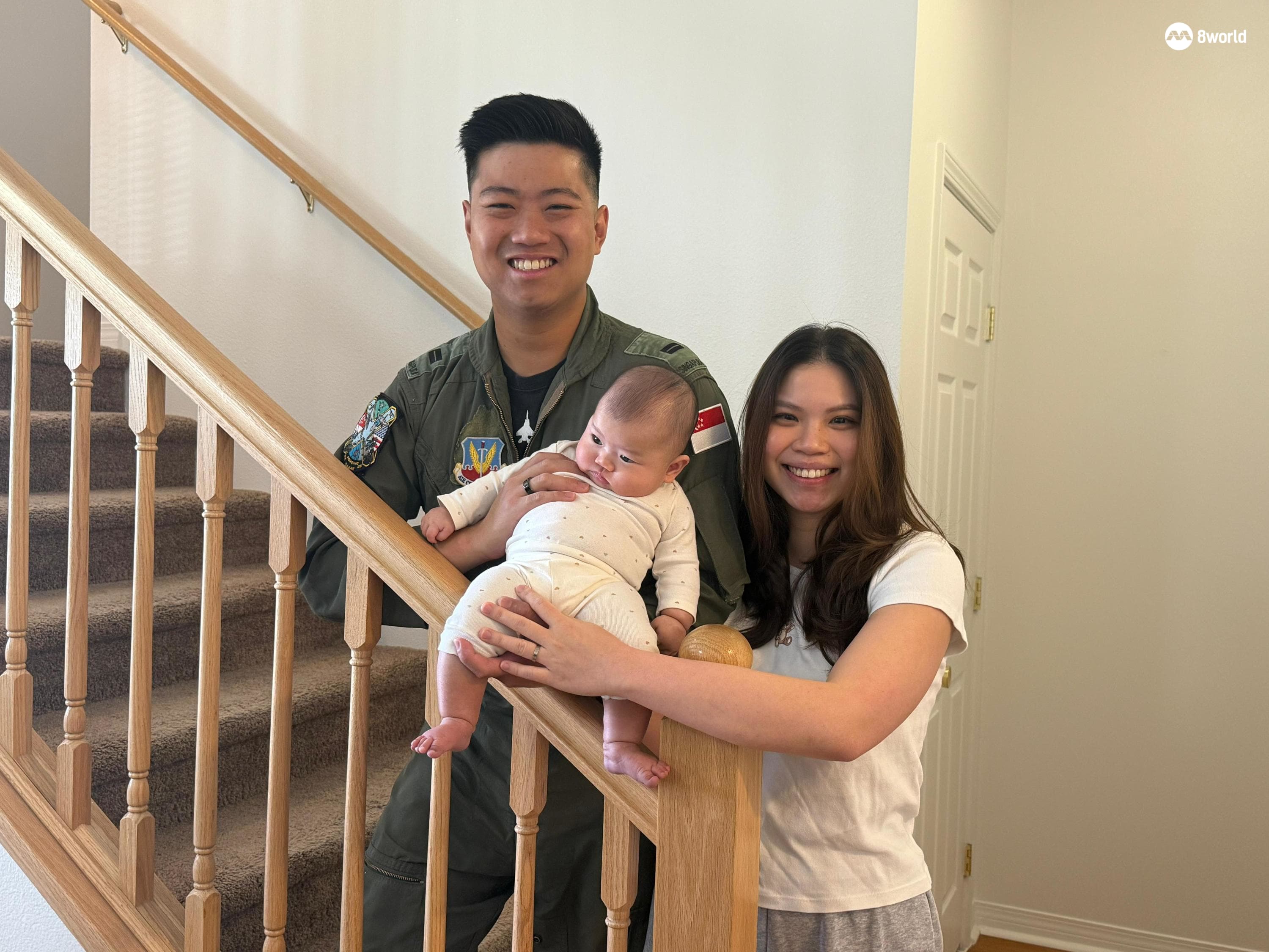 F-15SG型飞行员黄凯和太太刘嘉仪及女儿。(图:叶衍娴)