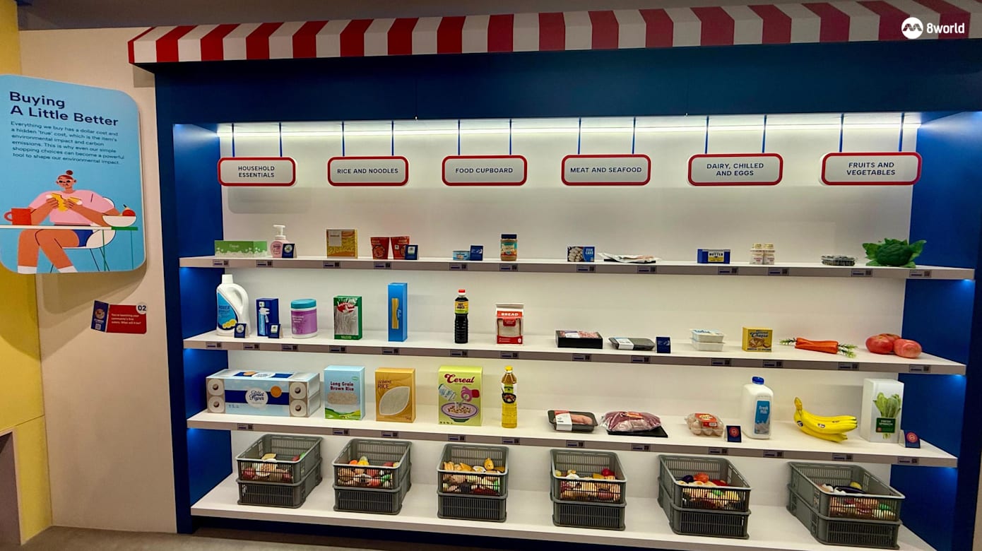 其中的亮点活动之一,是互动式“迷你超市”展区。访客可扫描二维码,在虚拟环境中使用60个“碳币”(carbon coins)选购生活用品,亲身体验“碳预算”购物概念,了解日常消费行为所产生的碳足迹。