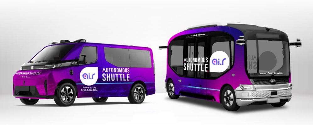 Grab的无人驾驶接驳车来自文远知行(WeRide),分别是可载五名乘客的GXR车子和可載八名乘客的小型接駁巴士 。(图:陆路交通管理局)