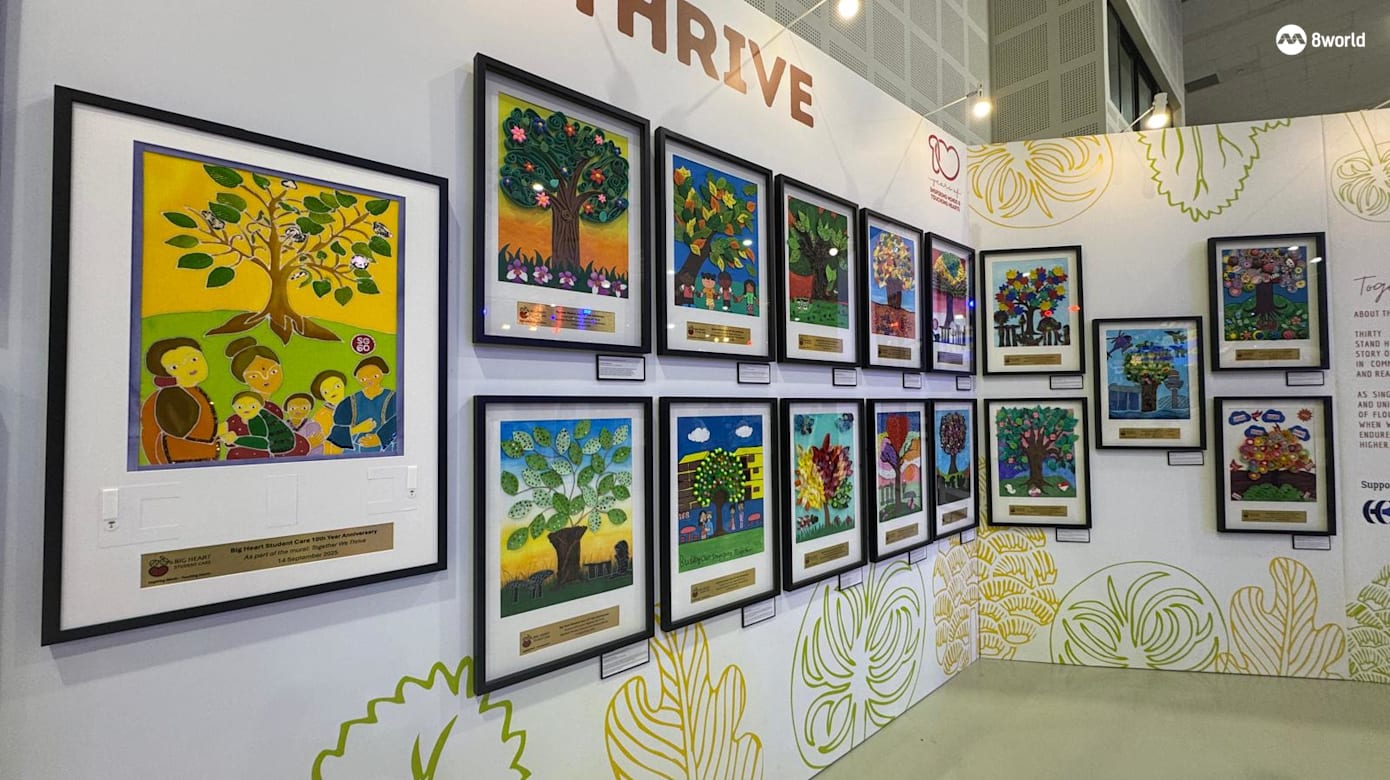 活动还特别设置了一组由30幅画作组成的集体艺术装置,展现了童心学生托管中心所倡导的多元与团结精神。