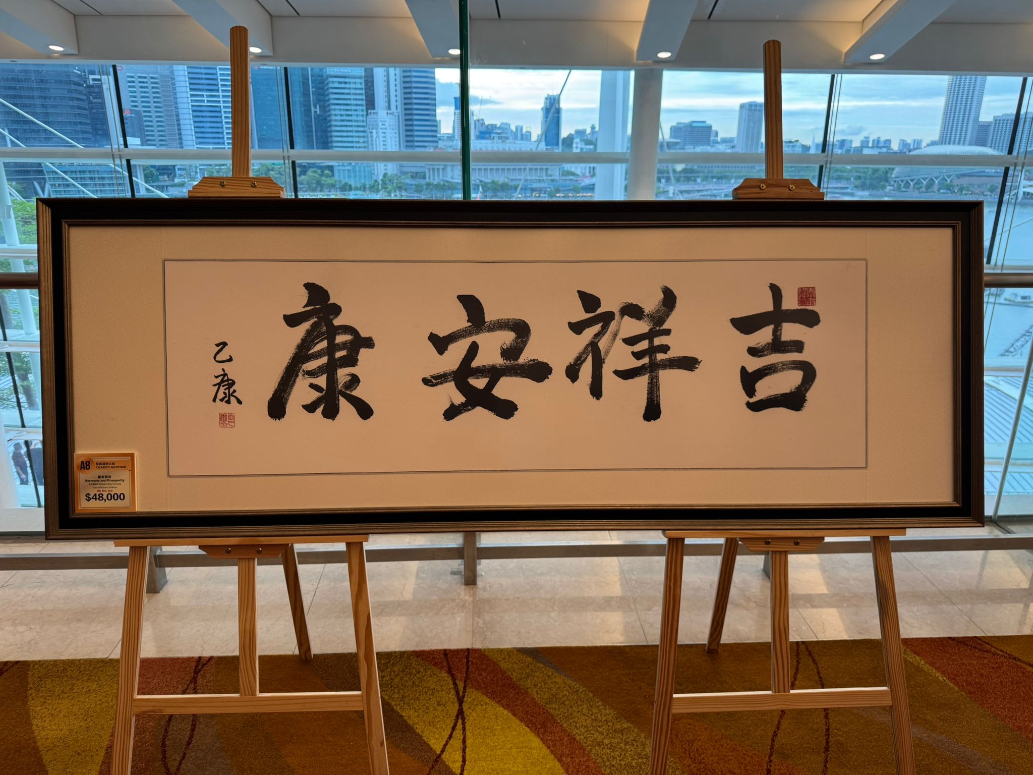众弘福利协会筹款晚宴共筹得将近500万元善款。其中,卫生部长王乙康的书法作品以25万8888元高价拍出。