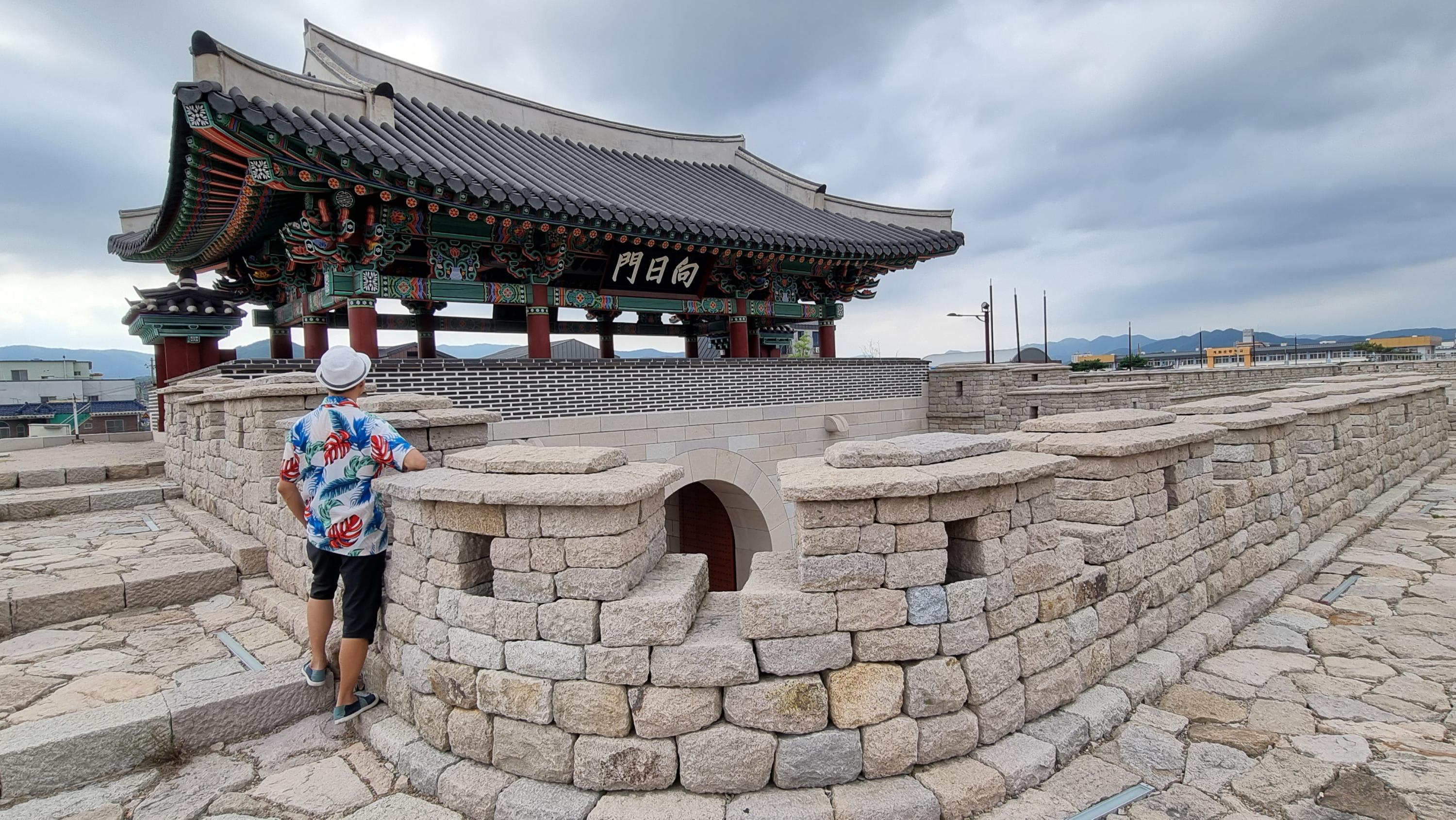 庆州历史遗迹地区于2000年列为世界遗产。庆州邑城的东门因为面向日出的东方,而得名 “向日门”,前为提高城门防御力的装置“瓮城”。(图:陈荣光)