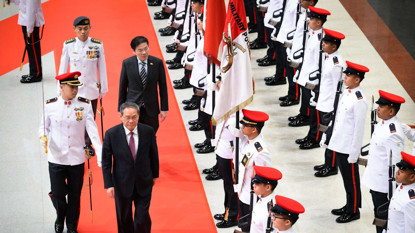 首次正式访问新加坡的李强今天(25日)下午抵达我国展开为期两天的正式访问,并在下午5点左右抵达国会大厦。我国黄循财总理为他举行欢迎仪式,军乐团在欢迎仪式上奏响两国国歌,李强之后在黄总理的陪同下,检阅仪仗队。