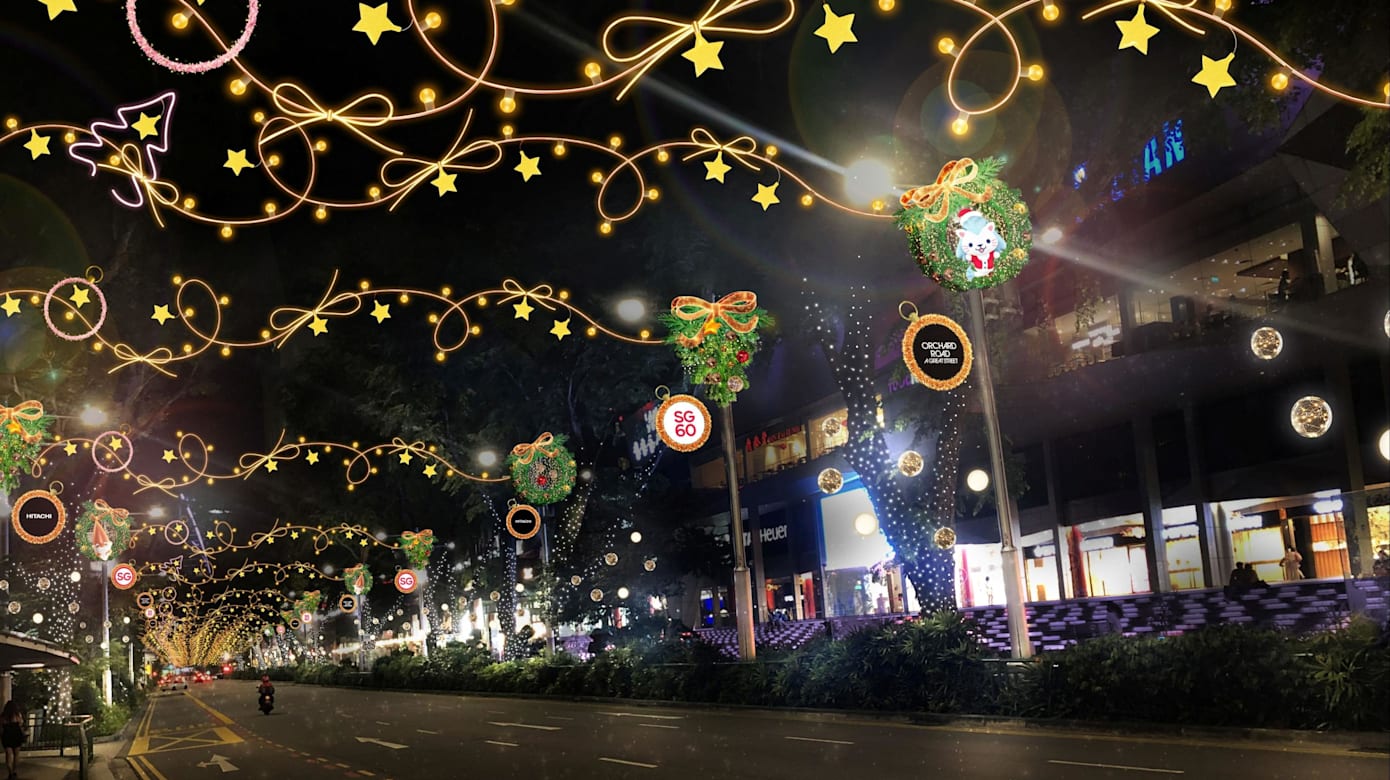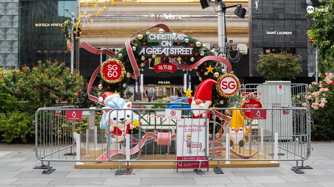 沿着从东陵到多美歌全长3.1公里的乌节路,街头将挂上融合SG60标志与本地旅游大使“Merli”的圣诞灯饰。灯饰以金色、玫瑰金和银白为主调,设计灵感取自花环与缎带,象征团结、温暖与希望。路上也将设置四个大型打卡装置,包括驯鹿拉三轮车、迷你拱门、巨型花环以及以大巴窑龙形游乐场为造型的装置。