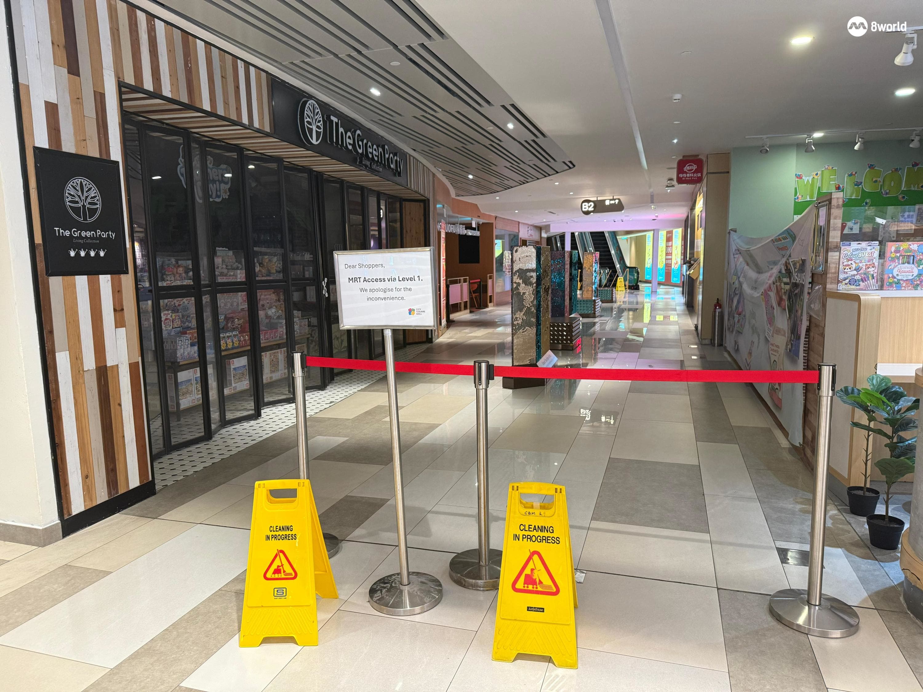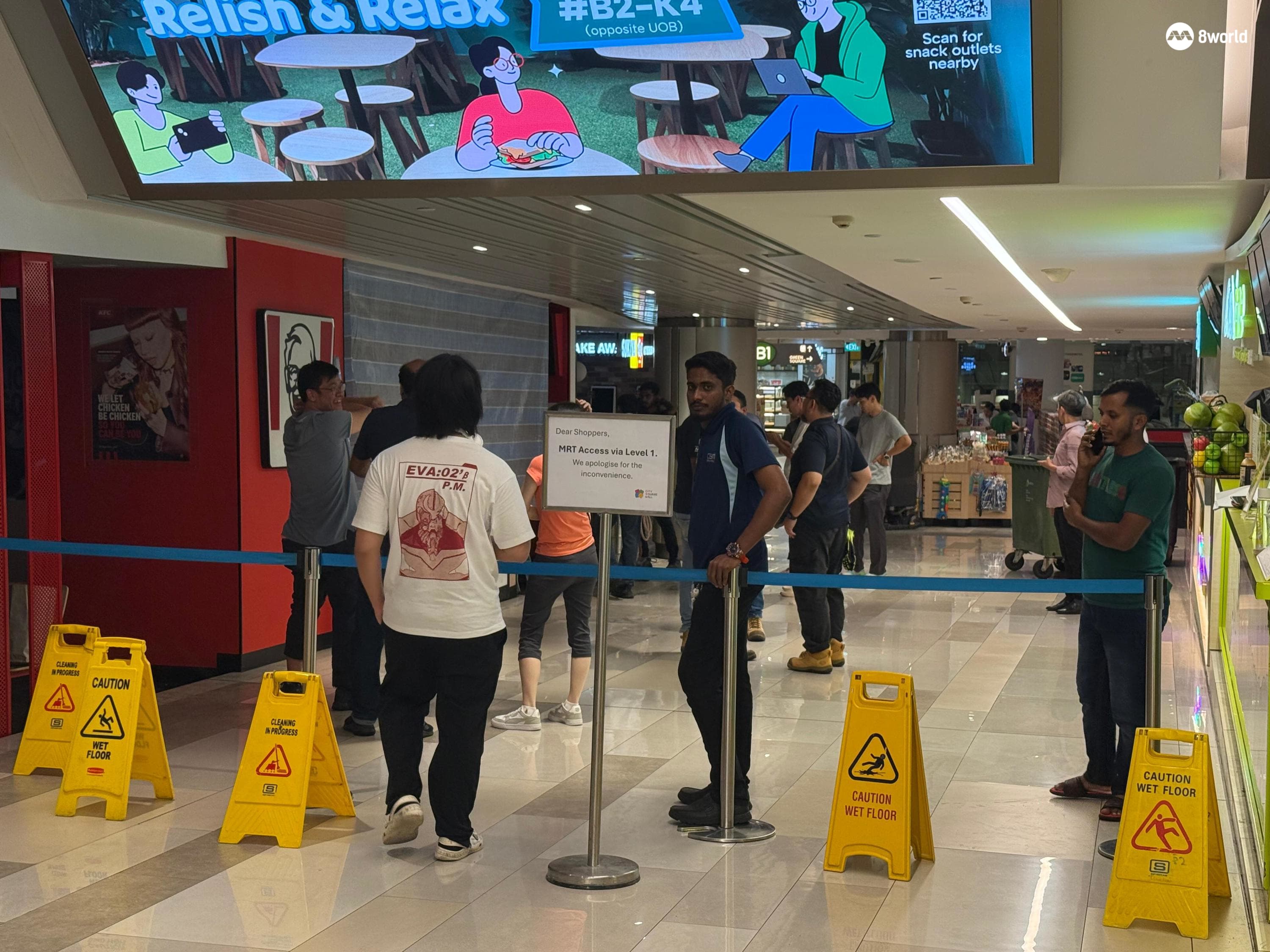 商场也将KFC快餐店外的区域和通往花拉公园地铁站之间的走道封锁起来,并放置告示牌指示访客通过一楼前往地铁站。