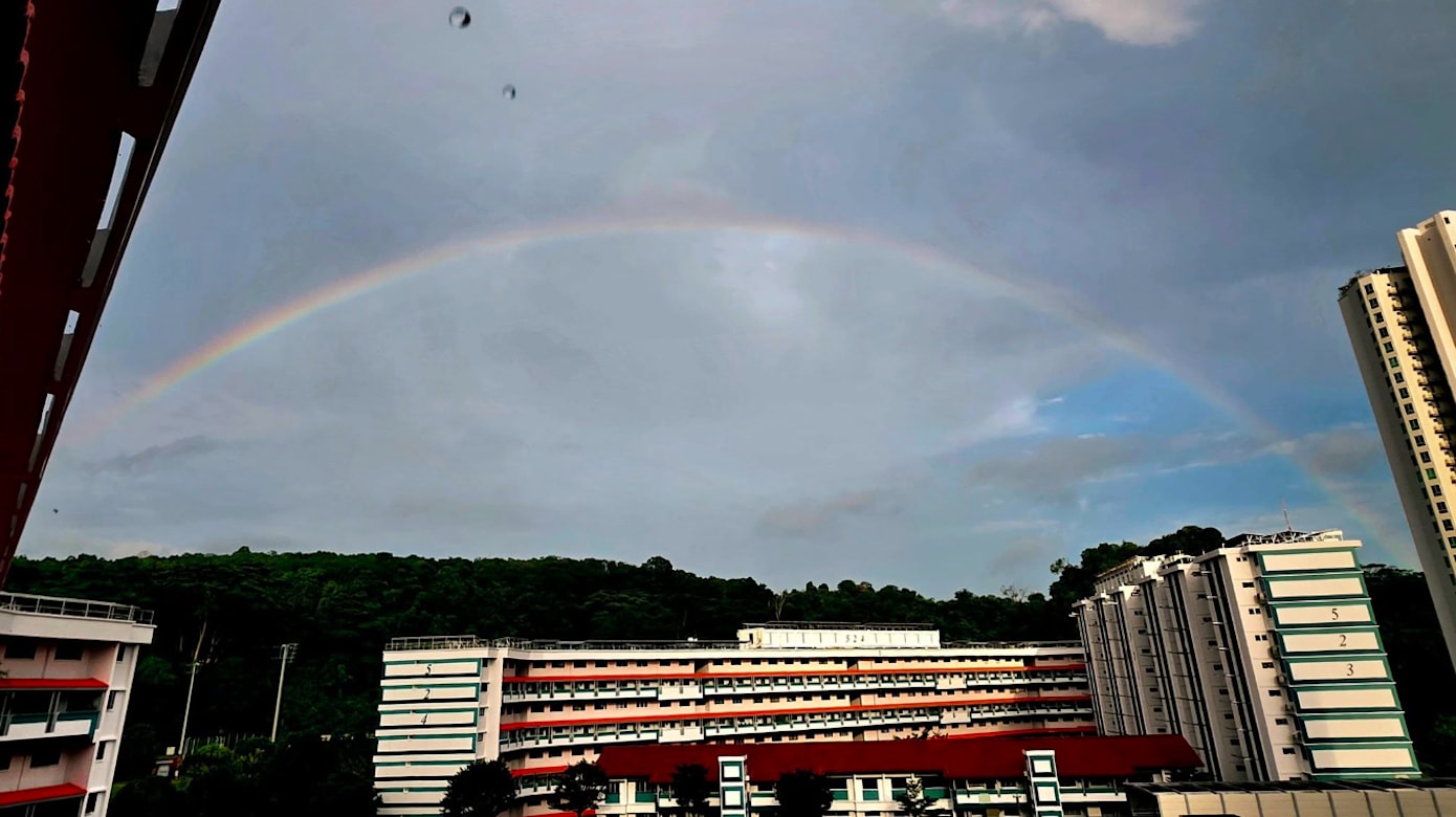 雨过天晴,大年除夕下午本地下了雷阵雨后出现彩虹,网民纷纷拍下美景发上网,愿马年顺心如意、福气如雨后彩虹般降临。