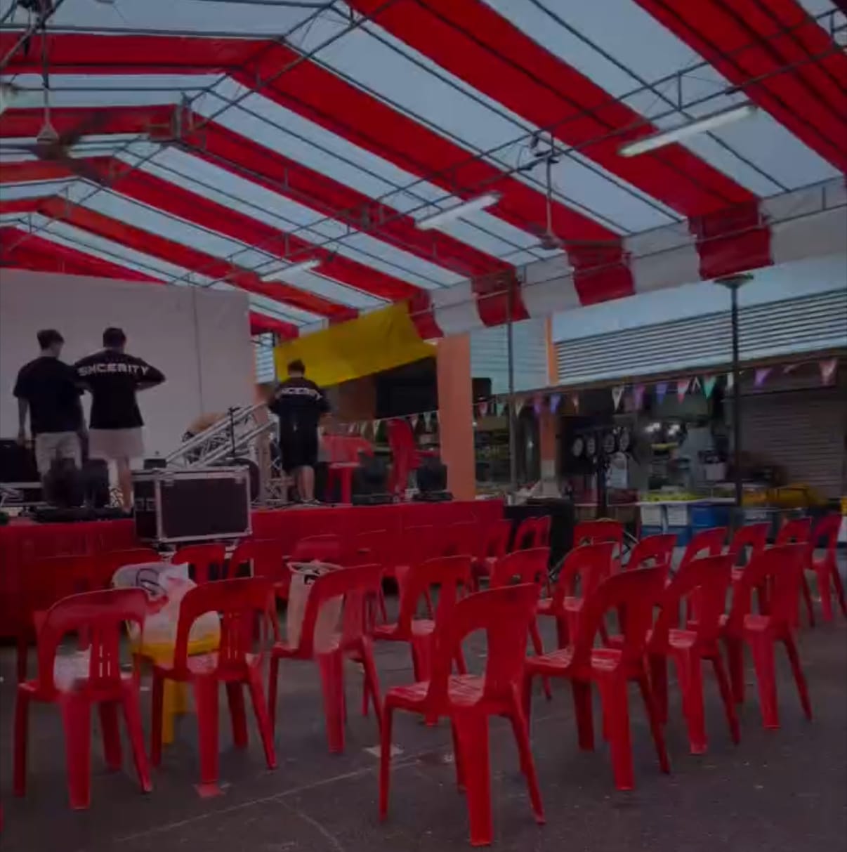 文禮礼巴刹食物中心刚在9月1日于文礼坊第221A座举行歌台庆中元节,艺媒体娱乐制作台主陈俊荣早早来到场地监督。(图:受访者提供)