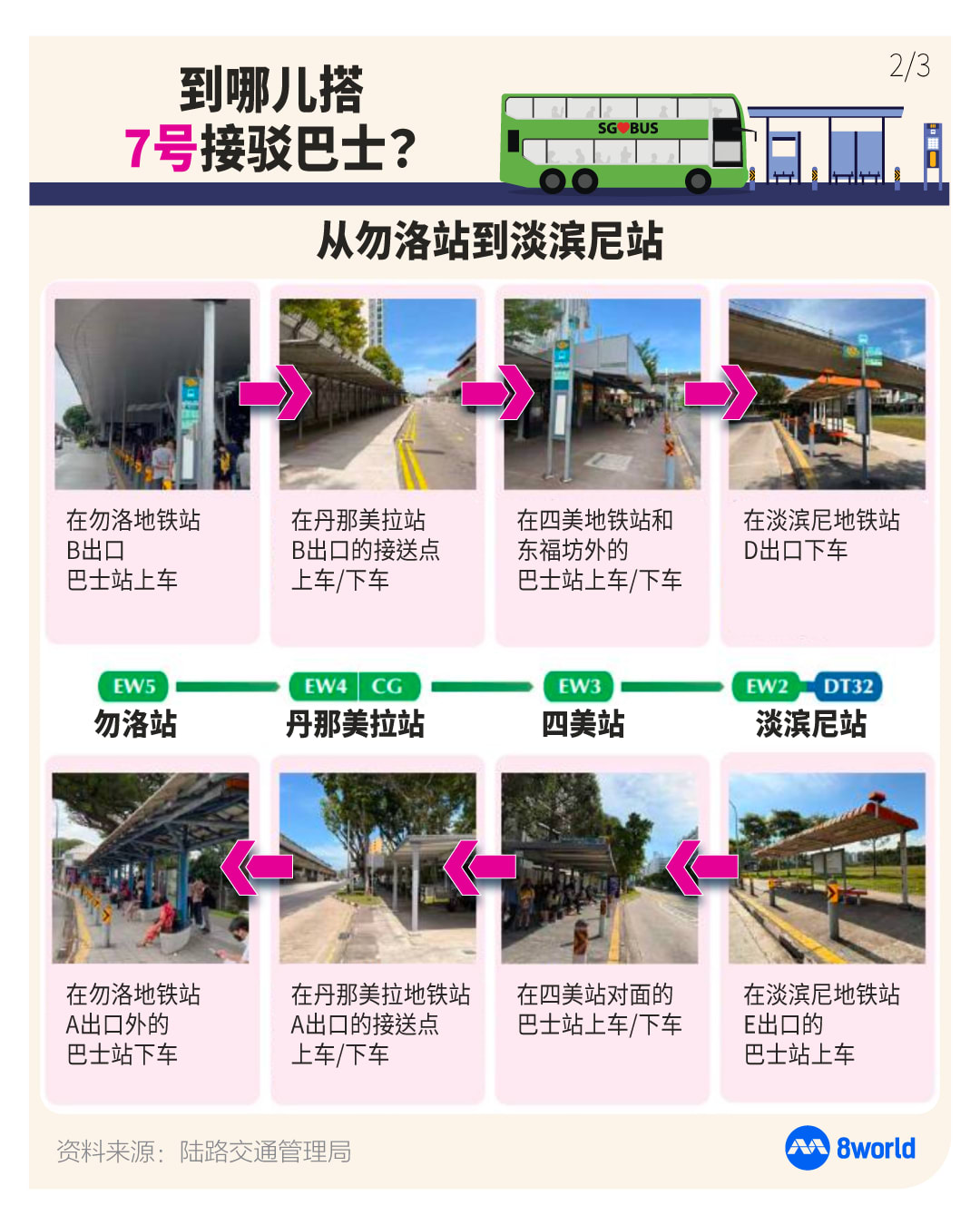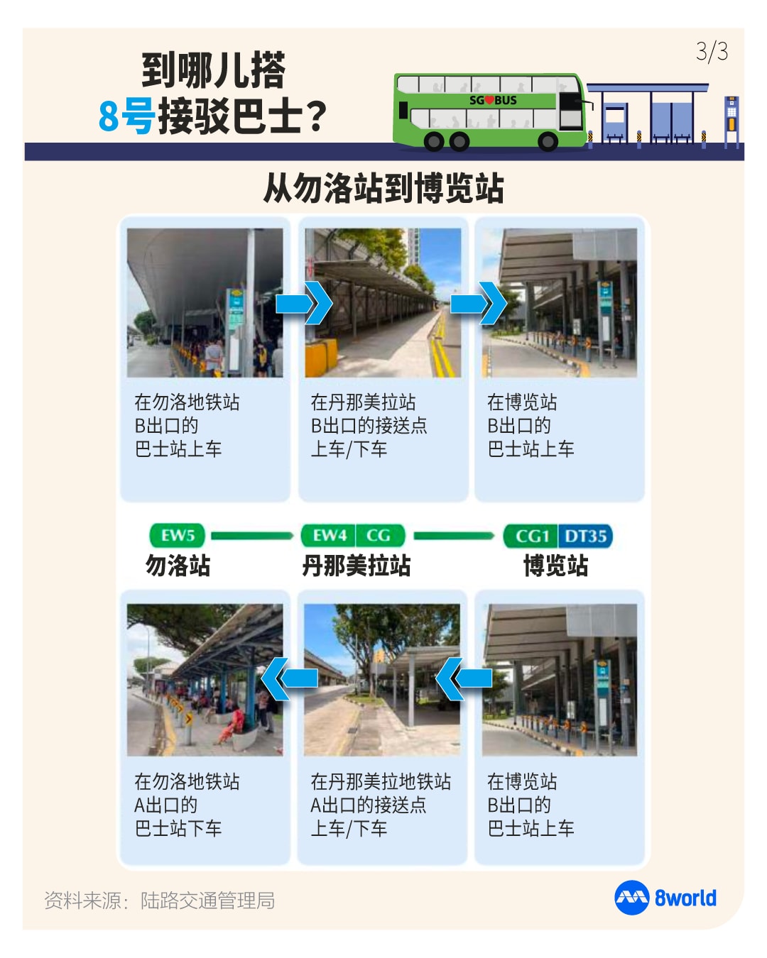 乘客也可选择使用公共巴士服务,前往滨海市区线(Downtown Line)或东西线其他地铁站以继续行程。