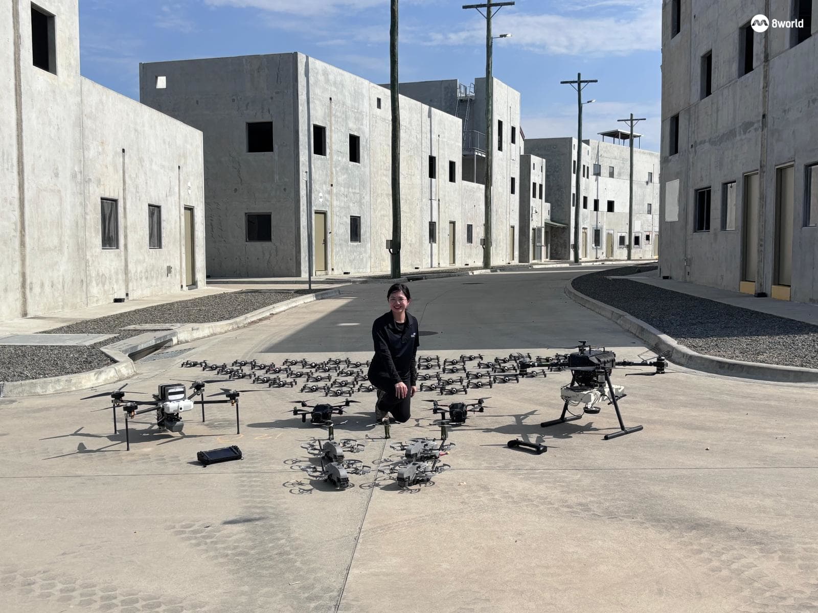 国防科技局陆军系统(能力发展)署长蔡佳玲和数十位工程师在在袋鼠演习进行各种无人机训练与测试。(图:朱静盈)