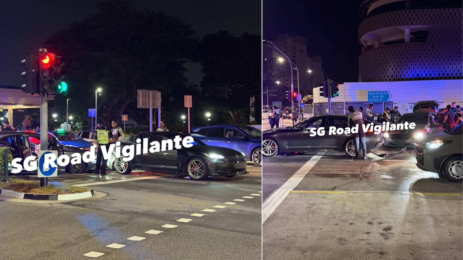 网民指,涉事车子之后在马林百列路发生车祸才停下。画面显示,有两辆车子停在马林百列地铁站前的公路上,其中停在前方的车子一部分车尾脱落。