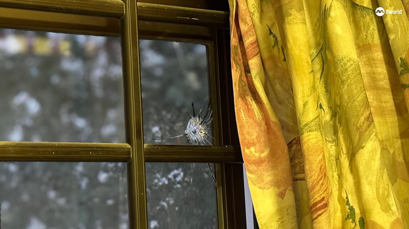 他起初还以为是插座爆炸,但之后发现房间地板,靠近窗户的位置有玻璃碎片。将窗帘拉上来后,方梓良才赫然发现窗户多了几个洞。