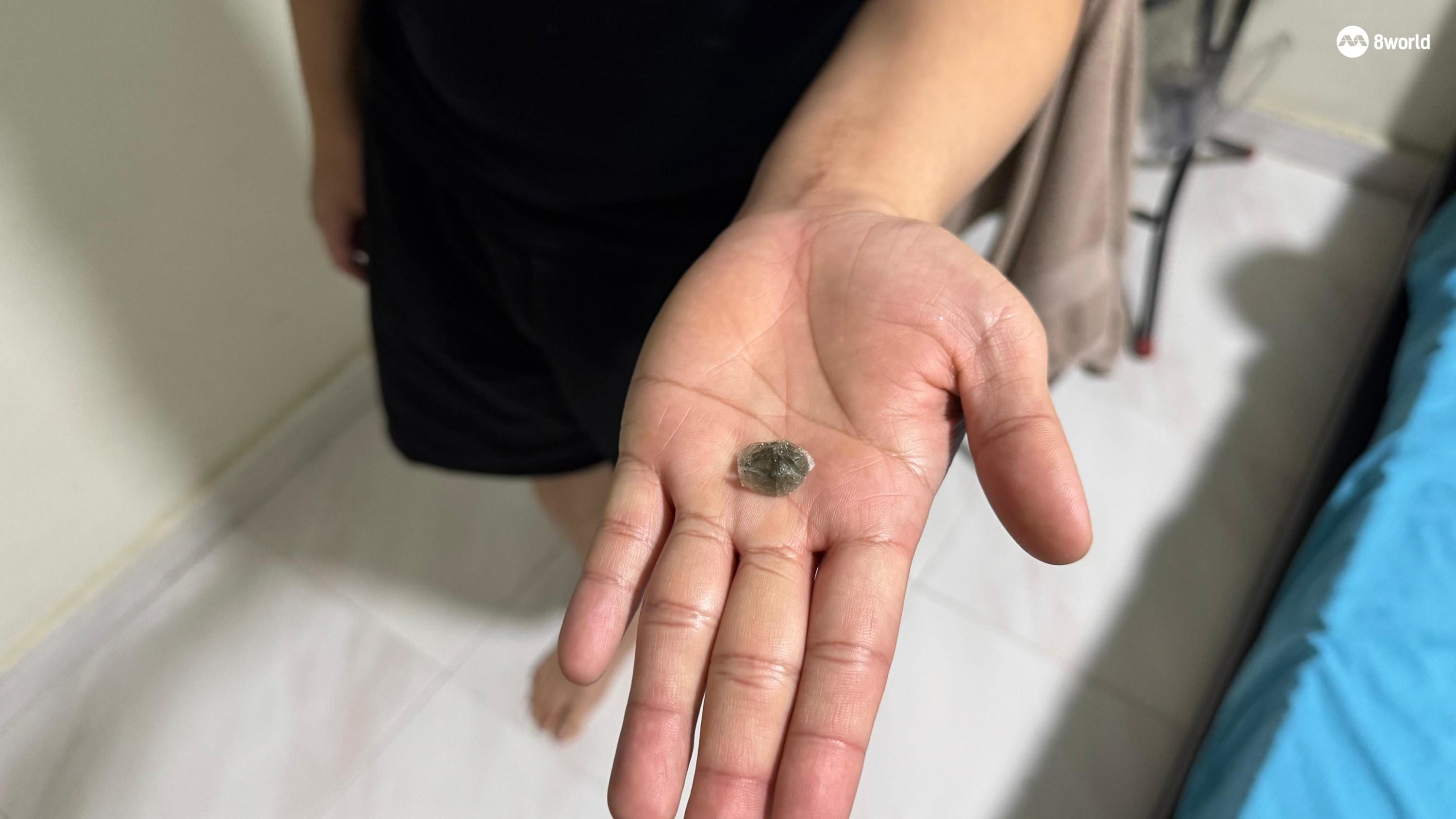 方梓良在房间地板上找到玻璃碎片。(图:许凯菱)