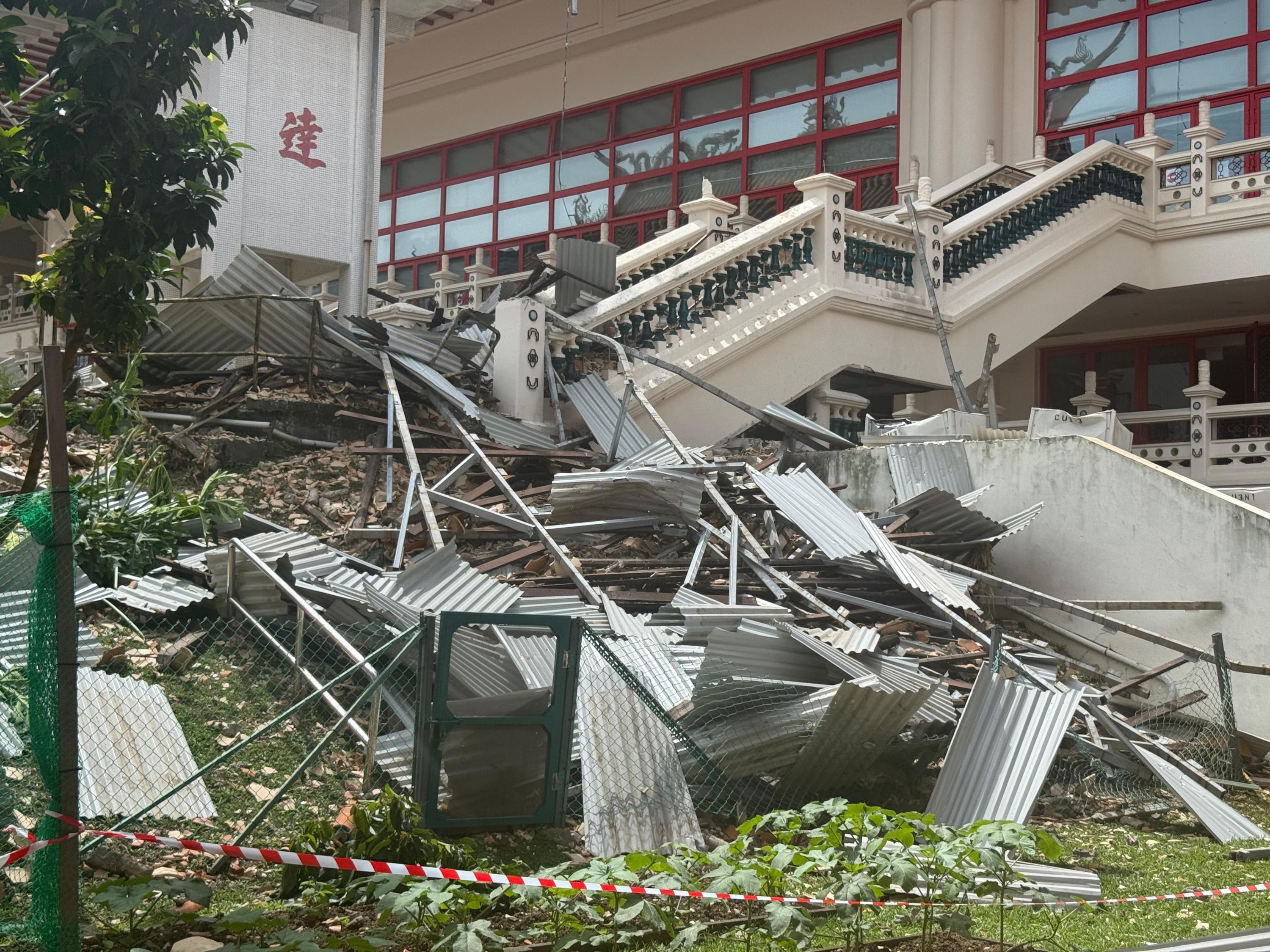 针对寺院屋顶结构和瓦片是否符合安全标准一事,建设局(BCA)发言人回复《8视界新闻网》询问时表示,建设局的工程师于昨晚8点40分抵达现场。经检查后发现,部分瓦片和结构框架从约四层楼高处坠落,邻近建筑物的窗户也被坠落的碎片砸坏,但建筑物的整体结构并未受影响。