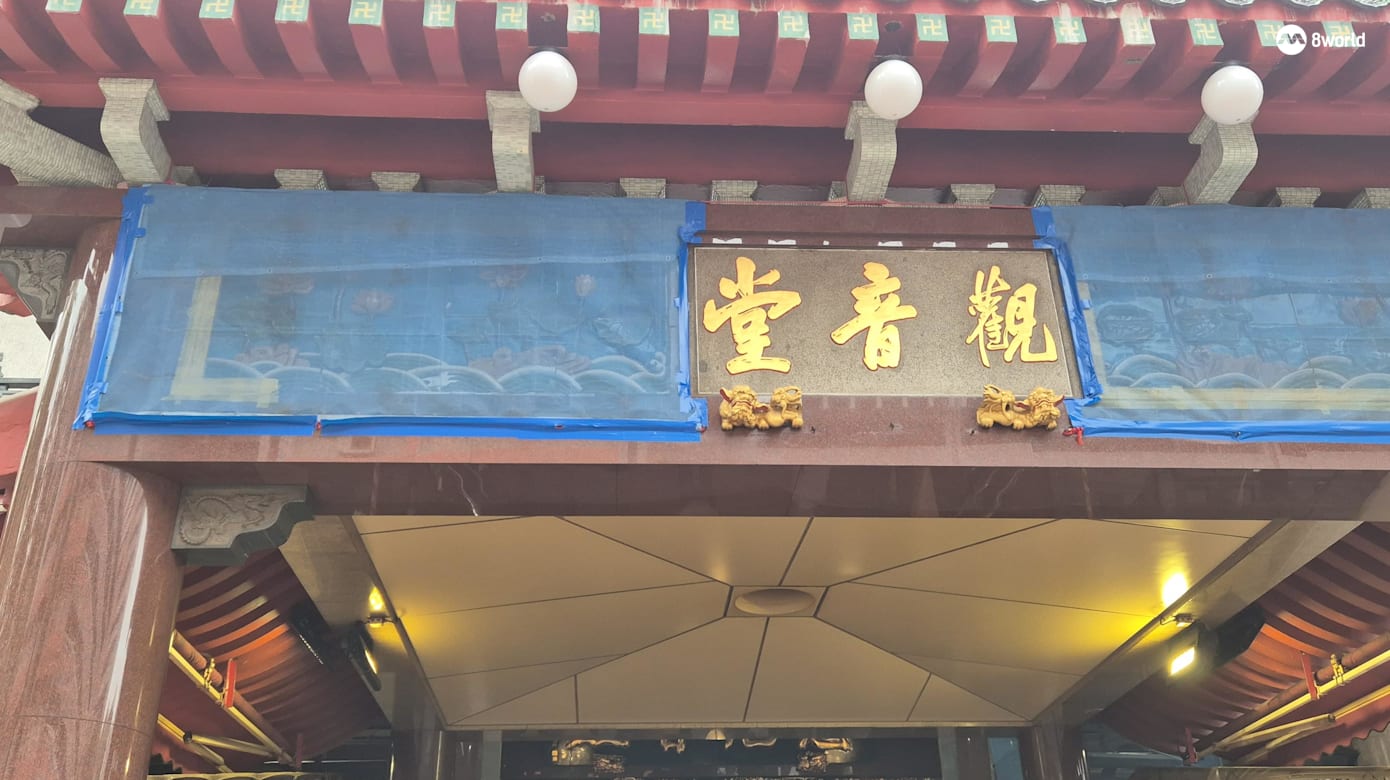 据《8视界新闻网》记者今天(30日)上午11点左右到四马路观音堂的观察,掉落瓷砖的部分已被遮起,修复工作正在进行中。在场的香客仍络绎不绝,大家似乎不受事件影响。