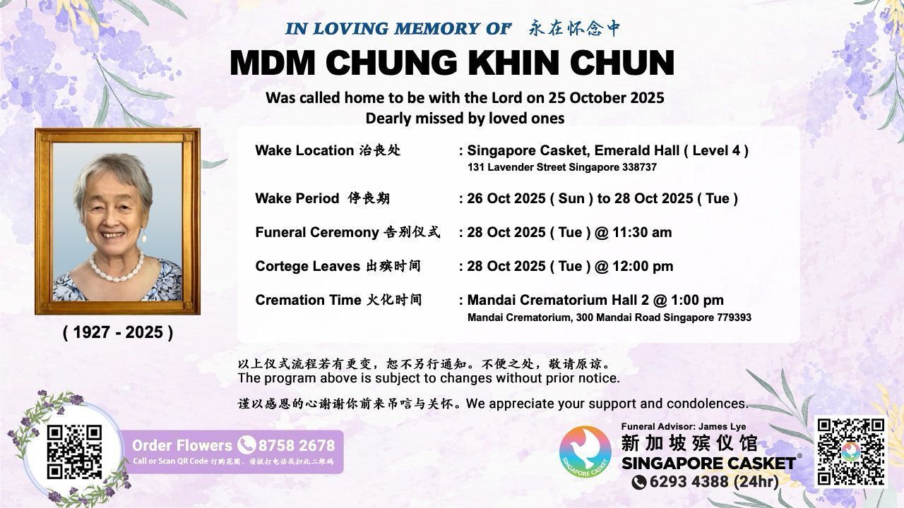 钟庆春生前的好友向《8视界新闻网》证实,钟庆春已在10月25日过世,并在10月28日出殡火化。