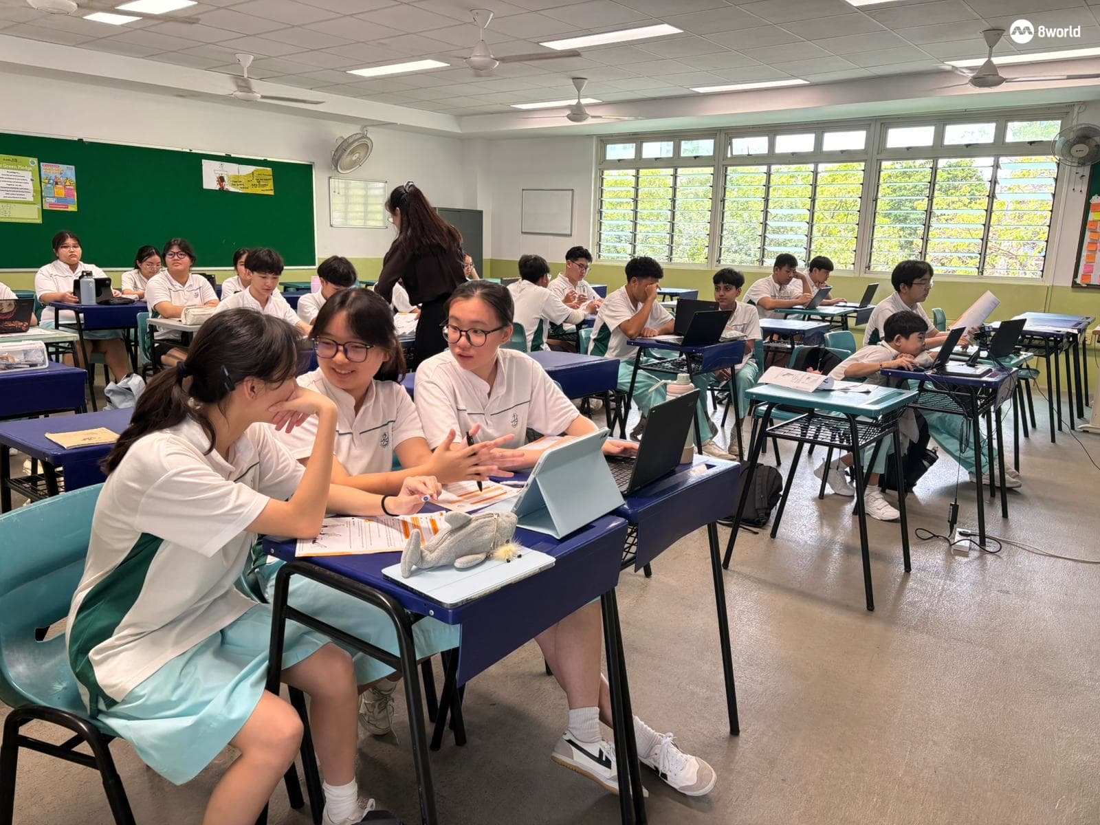 在四德女子中学,学生目前使用印刷和数码课本上地理课。地理老师陈闻闻说,给予学生网上资源能让她们可获取到课本以外的最新资料。“数码课本的好处就是学生可以根据她们的时间来安排自己的学习进度。进入不同的网站,然后看看她们就是在课室里学到的一些不同国家的内容。印刷课本的好处就是学生可以在课本上做笔记。”