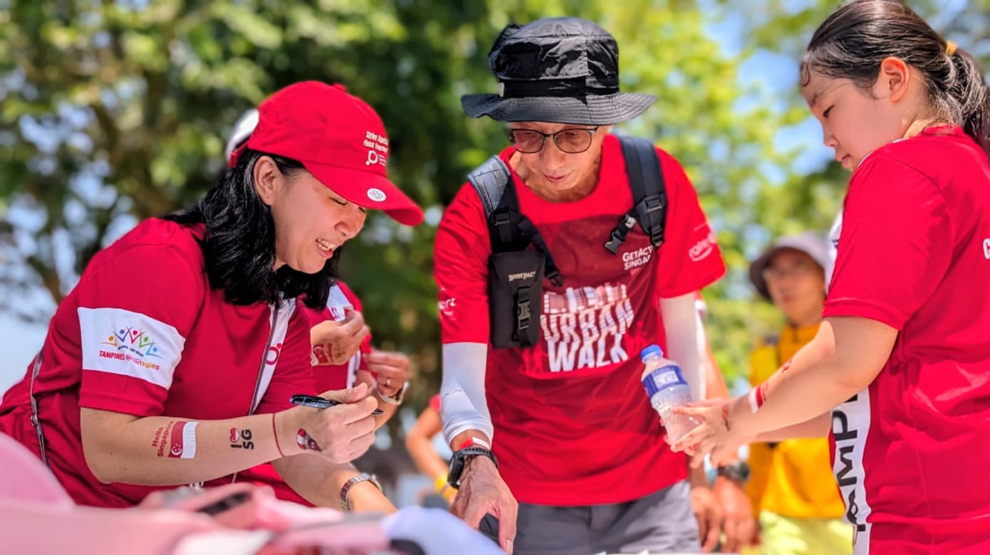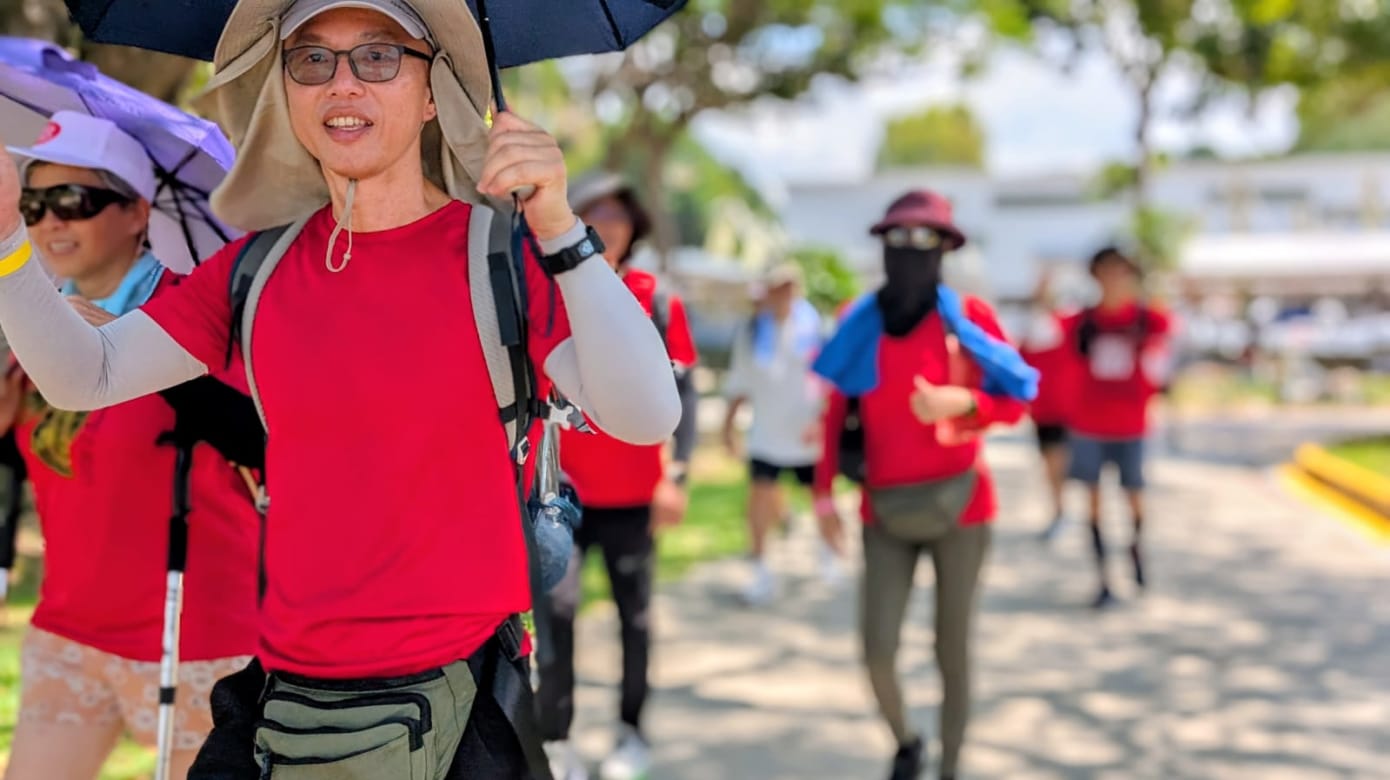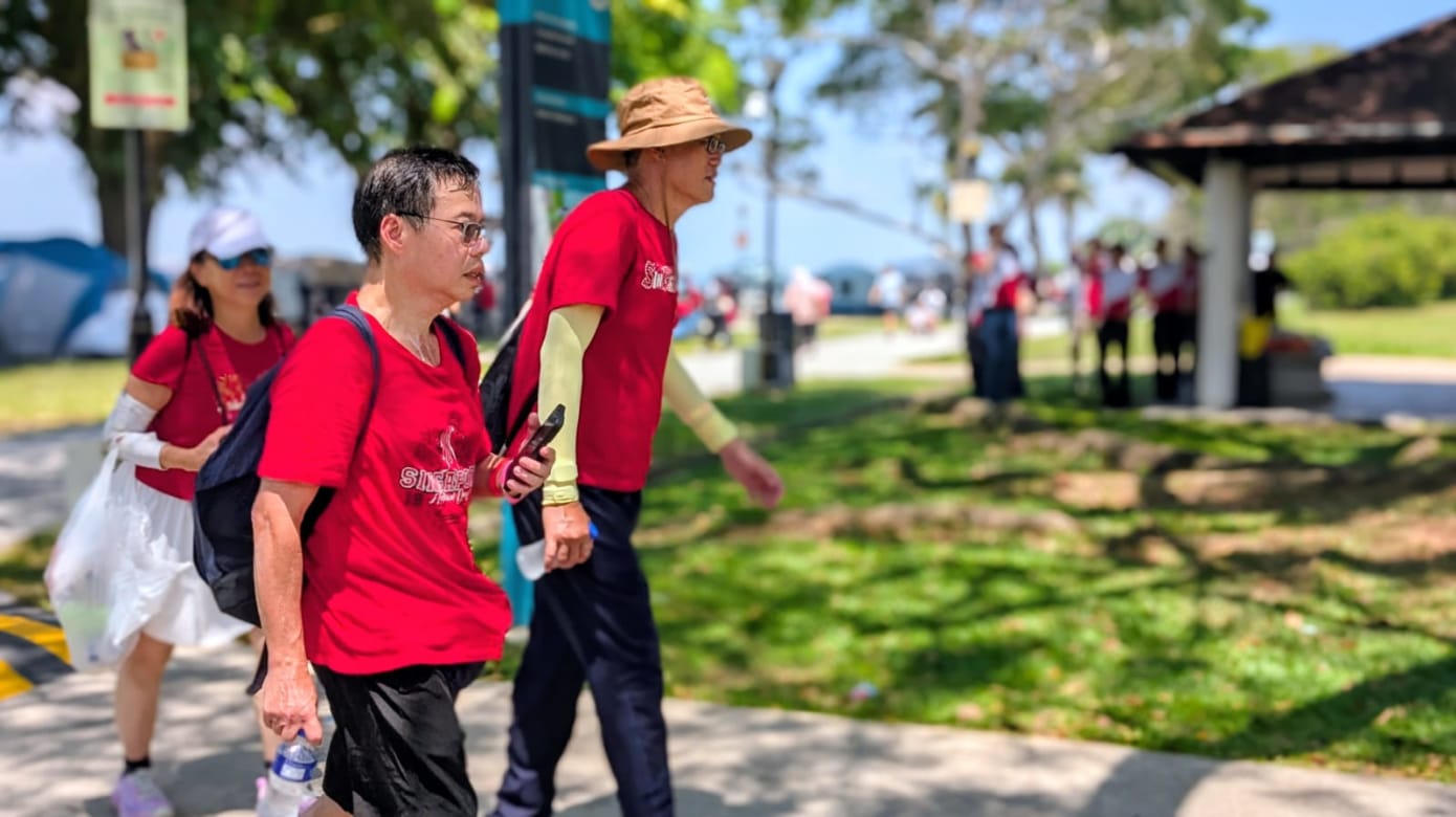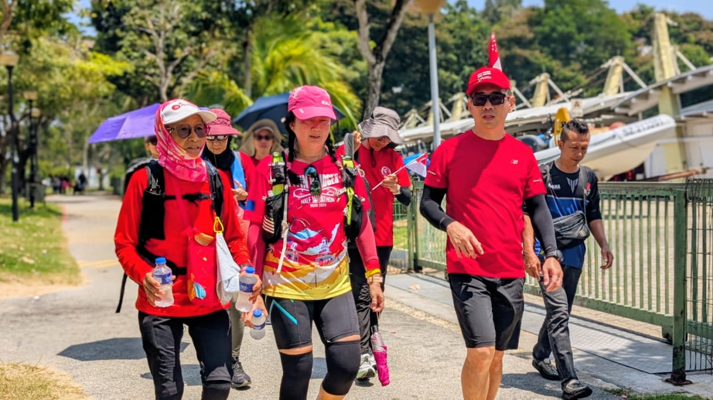 近70人从早上7点半开始,从圣淘沙跨海步道出发,以徒步60公里的方式庆祝国庆。主办方表示,参与者当中有不少是乐龄人士。