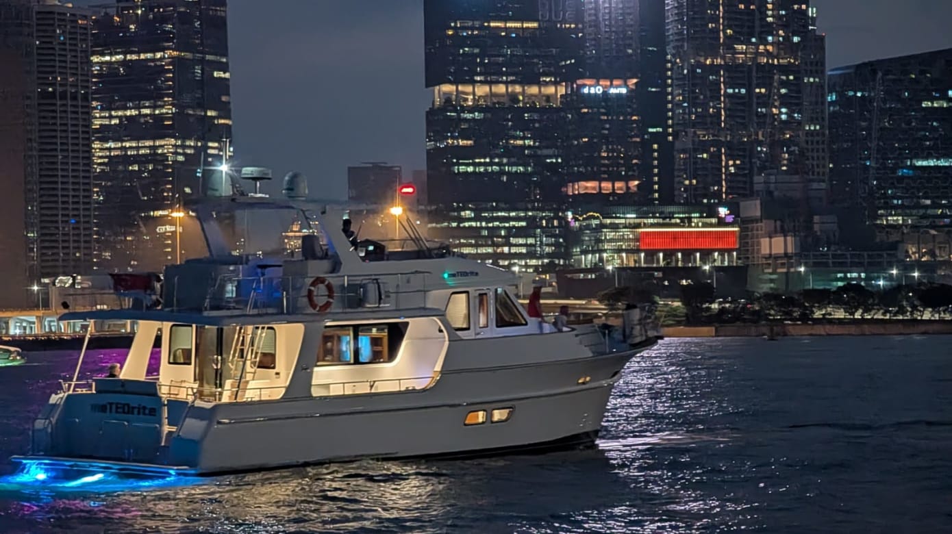 晚上8点多,他们一起唱国歌、宣读信约,并观看国庆烟火。这个特别活动由游艇行业协会以及一家私人游艇俱乐部举办。