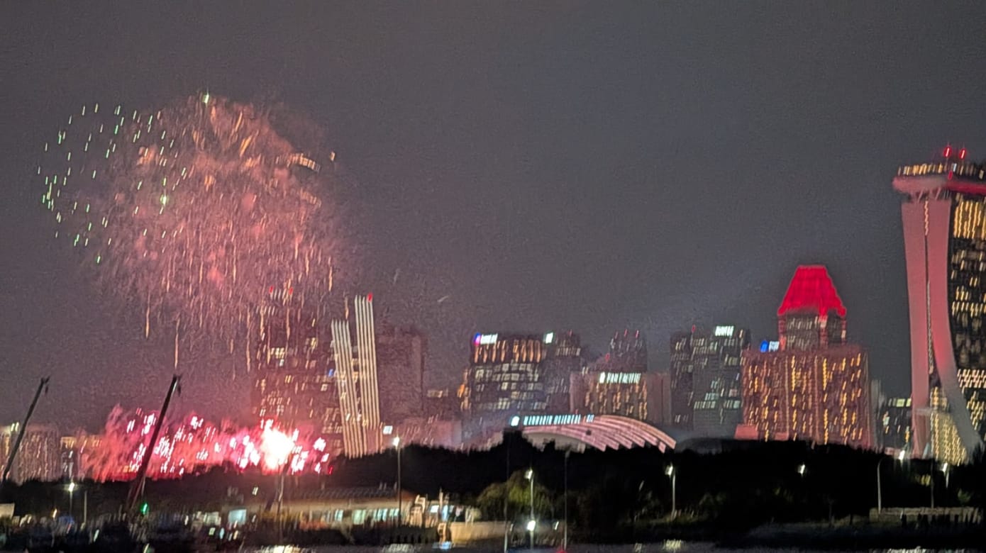 为了欢庆国庆日,60艘游艇从南部岛屿浩浩荡荡出发,然后齐聚在滨海湾一带的海域,见证燃放烟火的一刻。也有人徒步60公里,通过耐力挑战,体现建国60年坚韧不拔的精神。