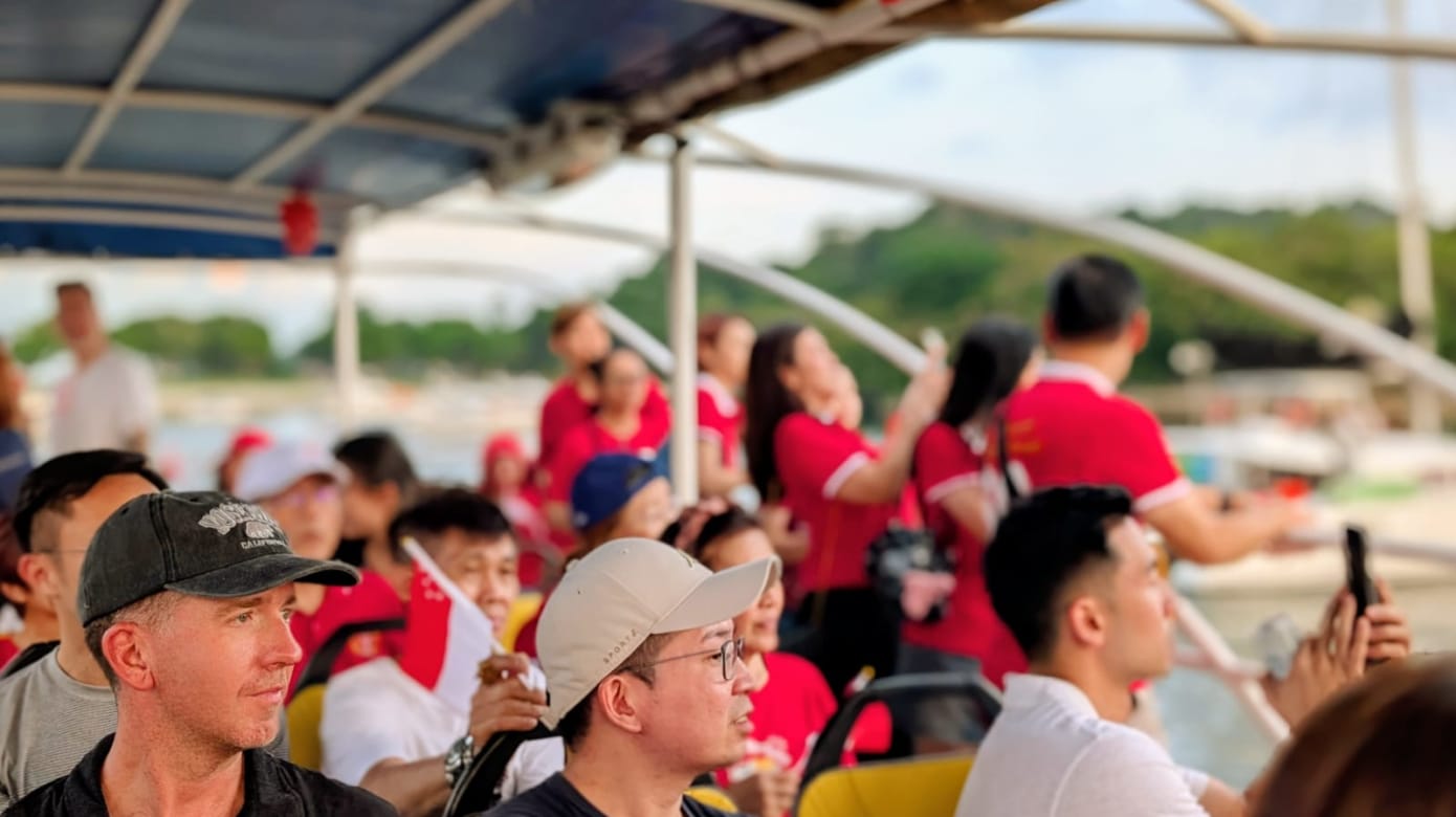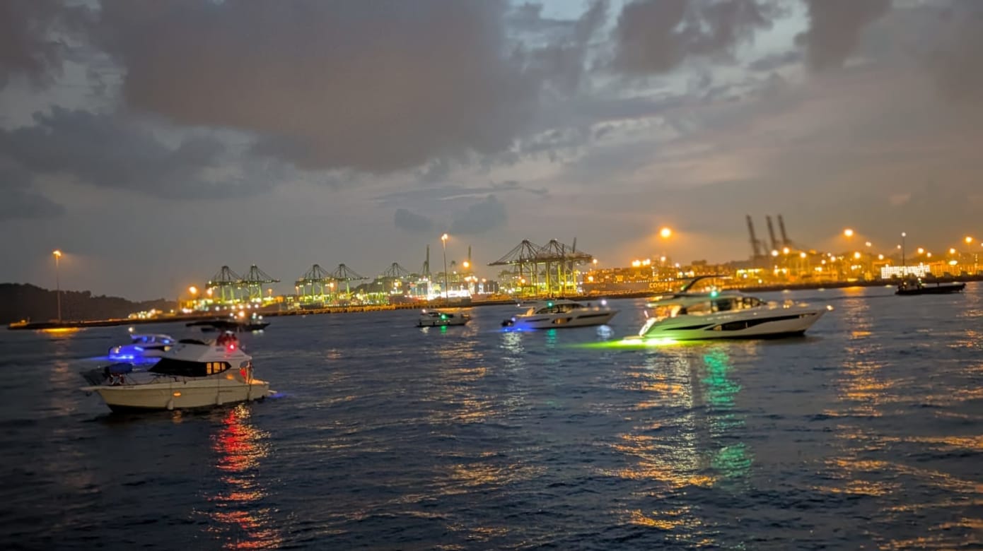 60艘私人游艇载着约250人,相约傍晚6点半,从拉扎鲁斯岛出发航向滨海湾。