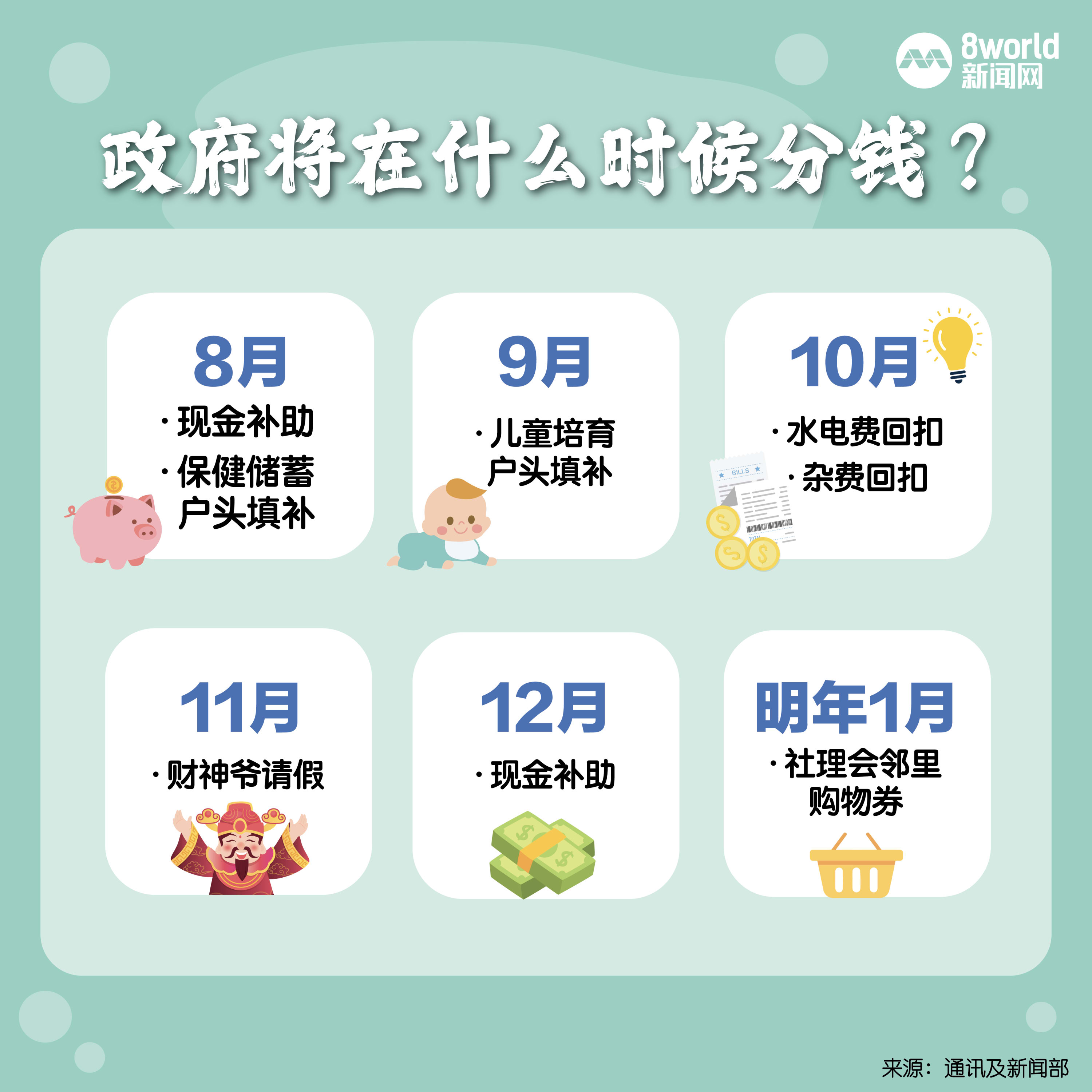总理说,为了减轻国人的负担,政府分发了不同的补助。和去年一样,政府今年几乎每个月都会给各种补贴,包括:8月份的现金补助以及保健储蓄户头填补、10月份的水电费和杂费回扣、12月的现金补助,以及明年1月的CDC购物券。