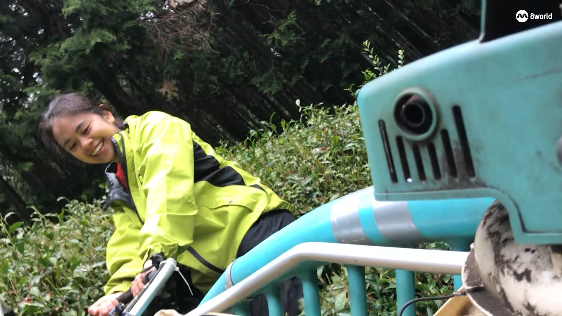 Ryhan在使用收割机收割茶叶。(图:何婷婷)