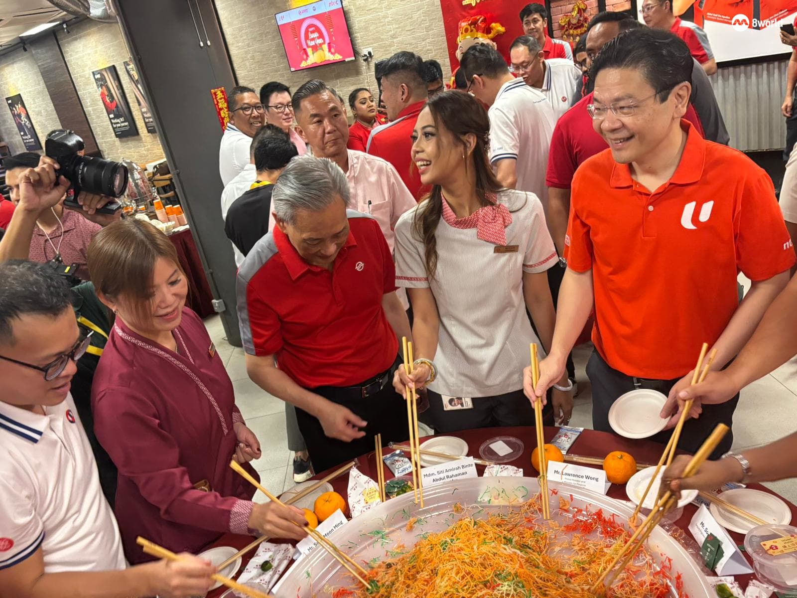 黄总理也同工友、职总和全国交通工友联合会领袖,以及SMRT管理层一起捞鱼生。