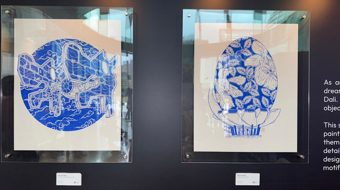其他的作品还包括他的蓝白系列,灵感来自新加坡标志性场景以及蓝白瓷餐具的水墨画,一些插画也被制作成T恤、马克杯和印刷品等。此次展览的所有收益将捐赠给视觉艺术组织——艺触觉(Art Outreach),以帮助支持其他年轻艺术家。