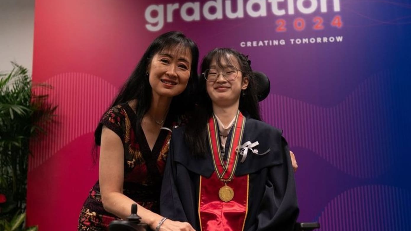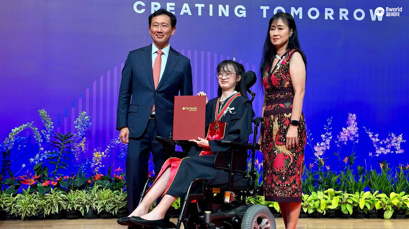 20岁的吴粹英(Raphaella Renanthera Gautama)今天(2日)从淡马锡理工学院的法律和管理课程毕业,并荣获义安公司最杰出克服者奖。