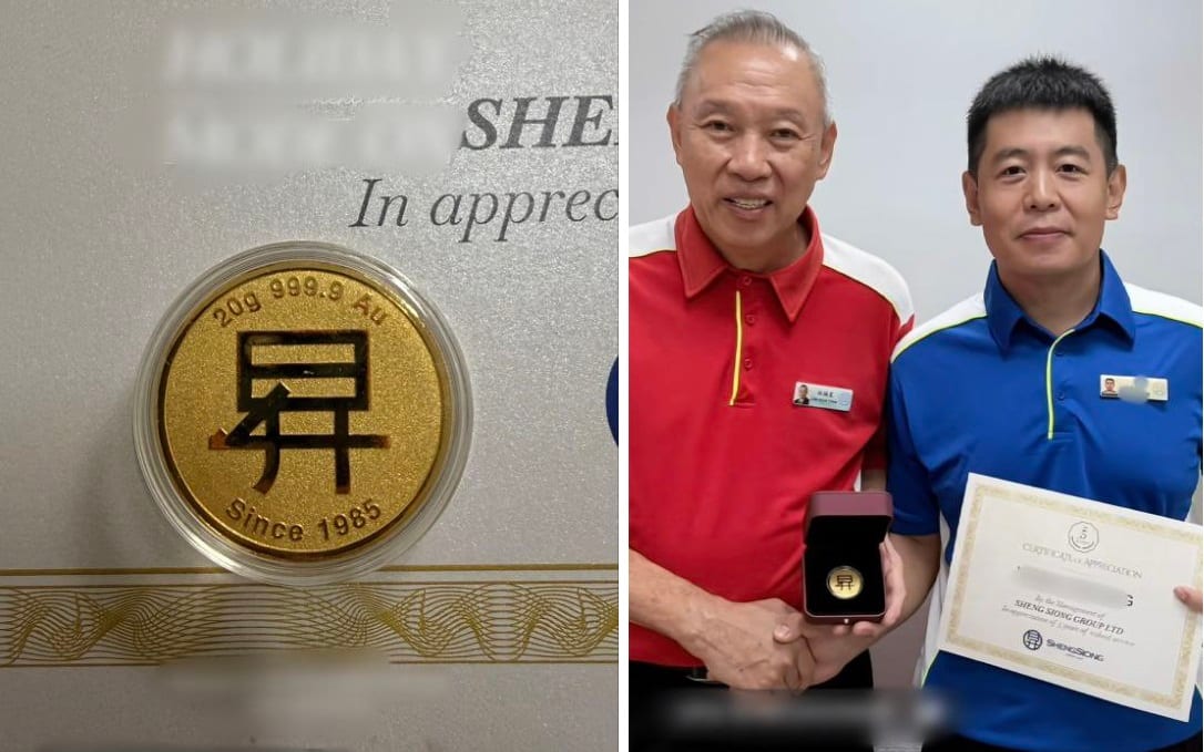 其中一名发布帖文的网民王先生,也上载了和昇菘超市总裁林福星的合影。王先生回复《8视界新闻网》时说,自己是昇菘超市猪肉部的普通员工,因在公司服务满五年,因此获颁发20克黄金金币为奖励。