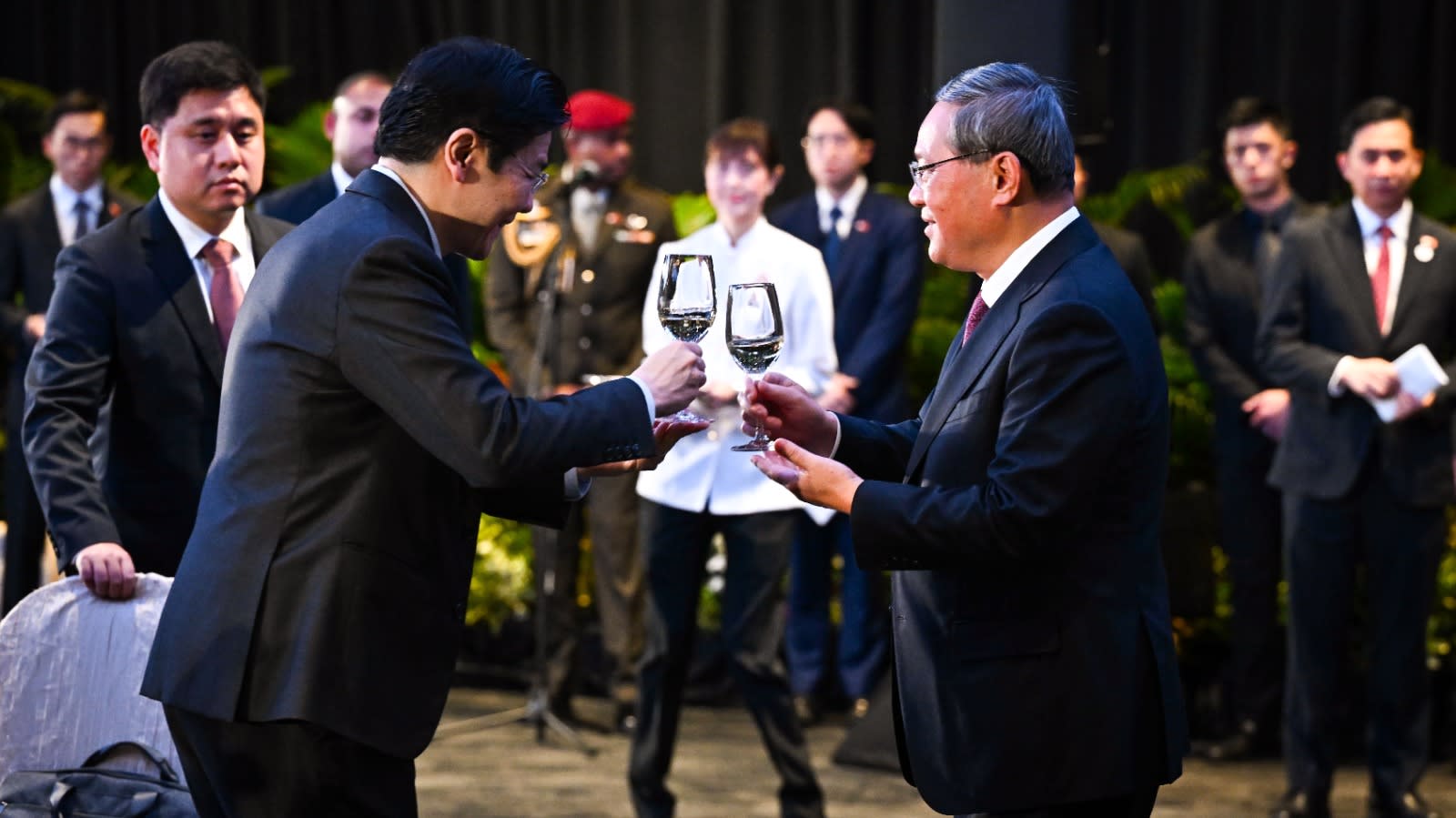 我国总理黄循财(左)和中国总理李强(右)。(图:CNA)