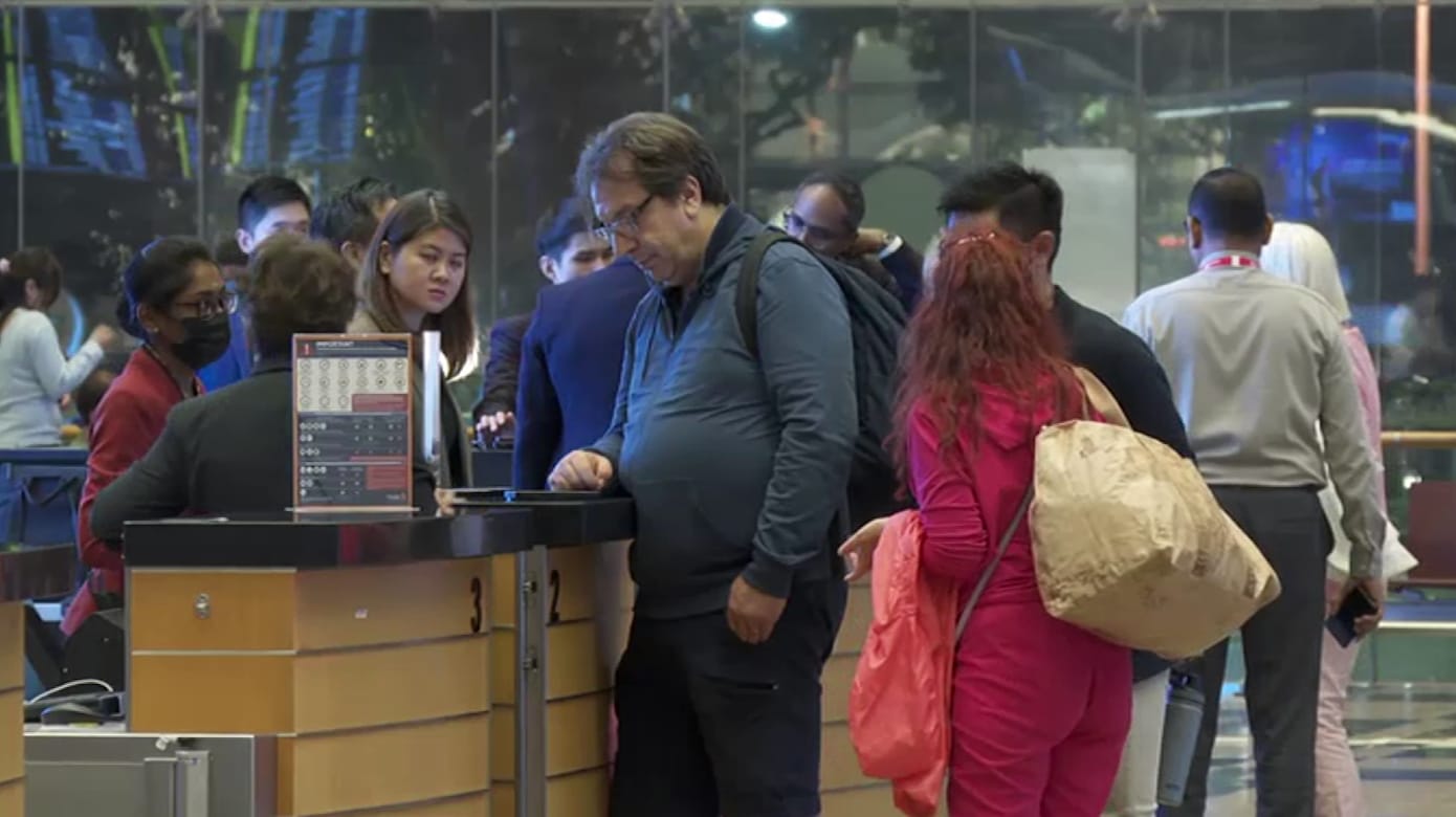 受中东战火影响,而被迫滞留本地的九名外国旅客,今早(8日)5点半顺利登上新加坡旅游局安排的特别航班SQ8002,飞往阿曼首都马斯喀特。这趟航班预计今天返程,载回滞留在阿曼的新加坡人。