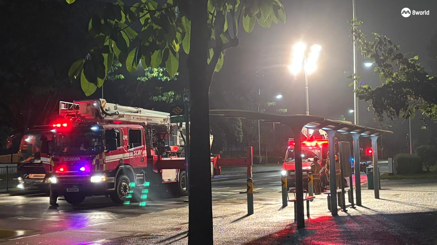 《8视界新闻网》记者在晚上8点15分左右抵达时,现场已经不见火光,也没有刺鼻的烧焦味,现场有至少七辆民防部队车辆和两辆警车。