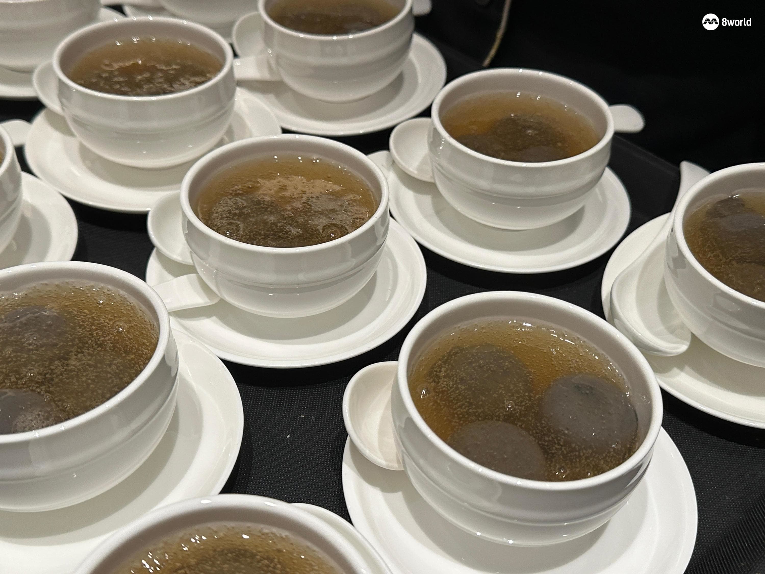 由于国际吞咽障碍饮食标准不允许一道菜品有两个或以上的口感质地,御宝轩(世界城)推出的“同桌同餐吞咽友善飨宴”中,黑芝麻汤丸的浓稠汤底将分开供应。(图:梁居磊)