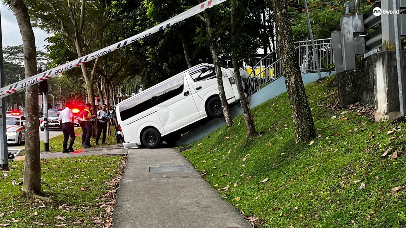 蔡厝港发生惊险追逐战,警方追逐一辆货车,从林厝港一路追到蔡厝港,货车被指违规U转和闯红灯,最终冲过马路撞上斜坡,结束这场大约半小时的追逐。