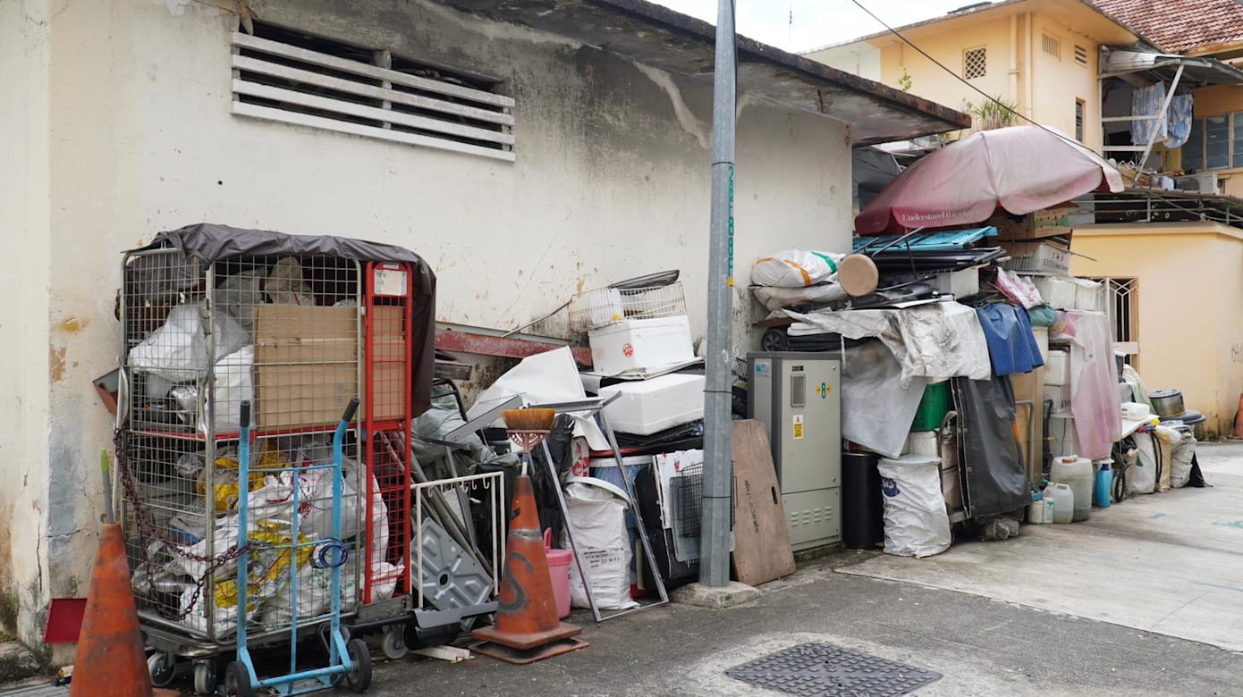 这名网民在社交媒体Facebook群组Complaint Singapore发文说,这名大叔原本只租用一个停车库,如今却逐渐将旧货堆放到车库前方及侧面。物件的高度和数量也不断增加,已经造成老鼠和蟑螂滋生的问题。