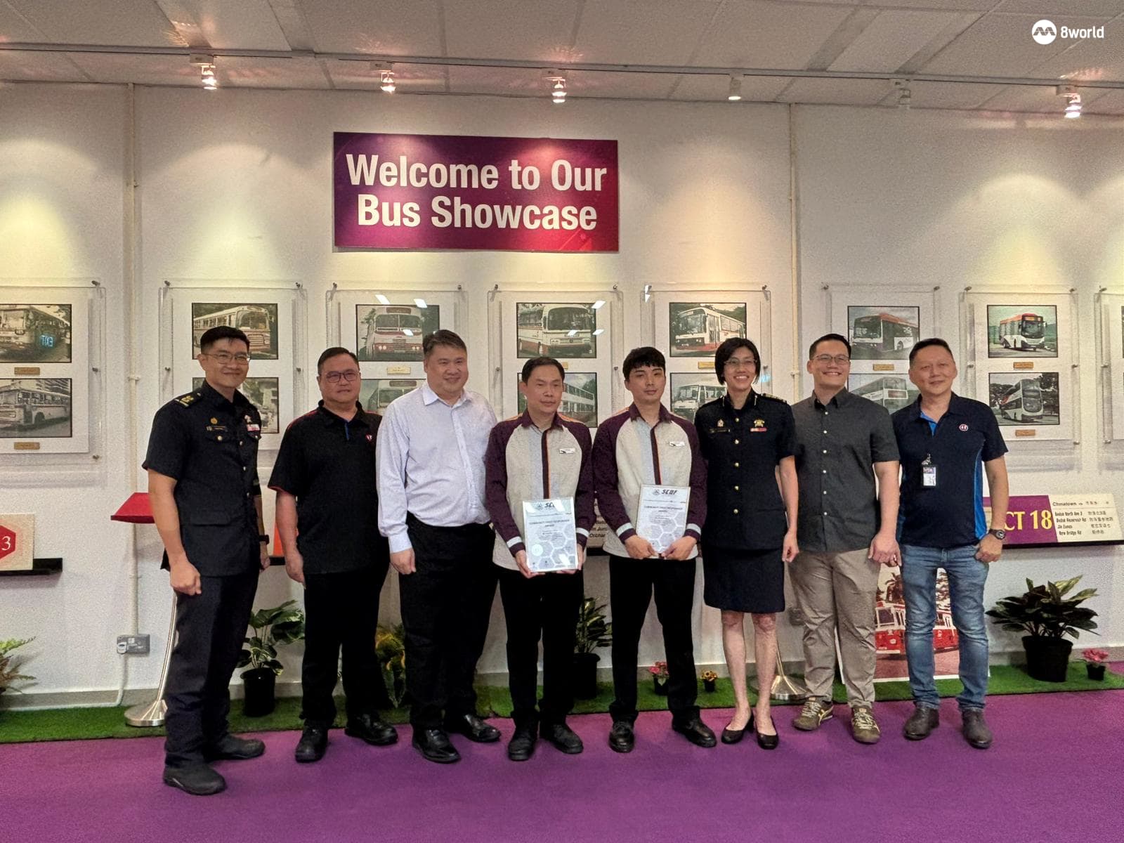 民防部队给两名巴士车长颁发社区先遣急救员奖。(图:张慧仙)