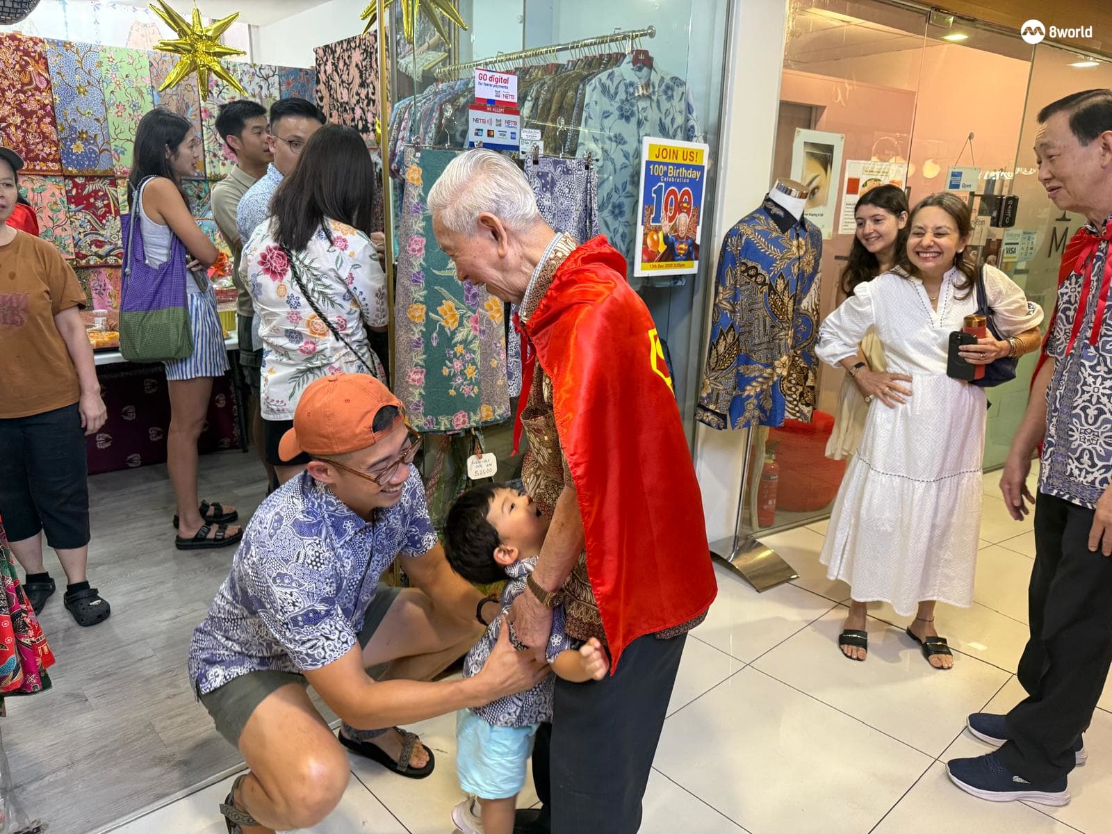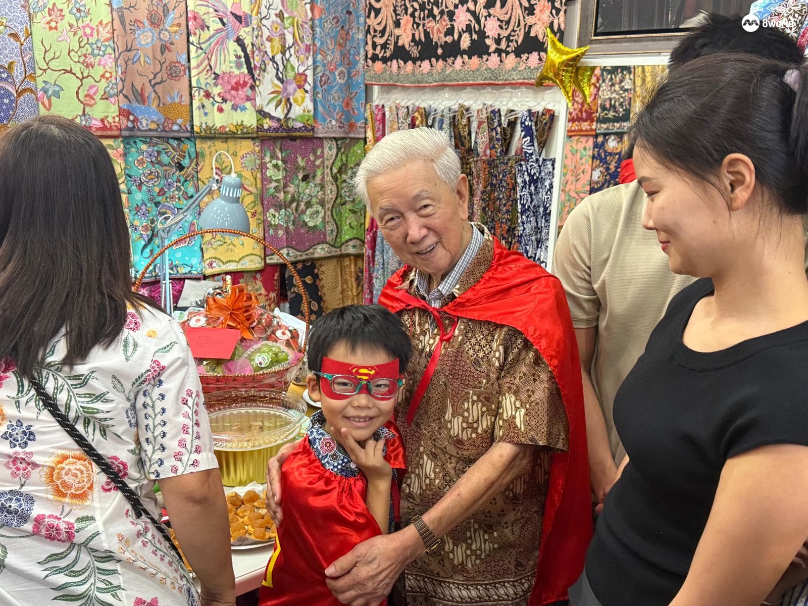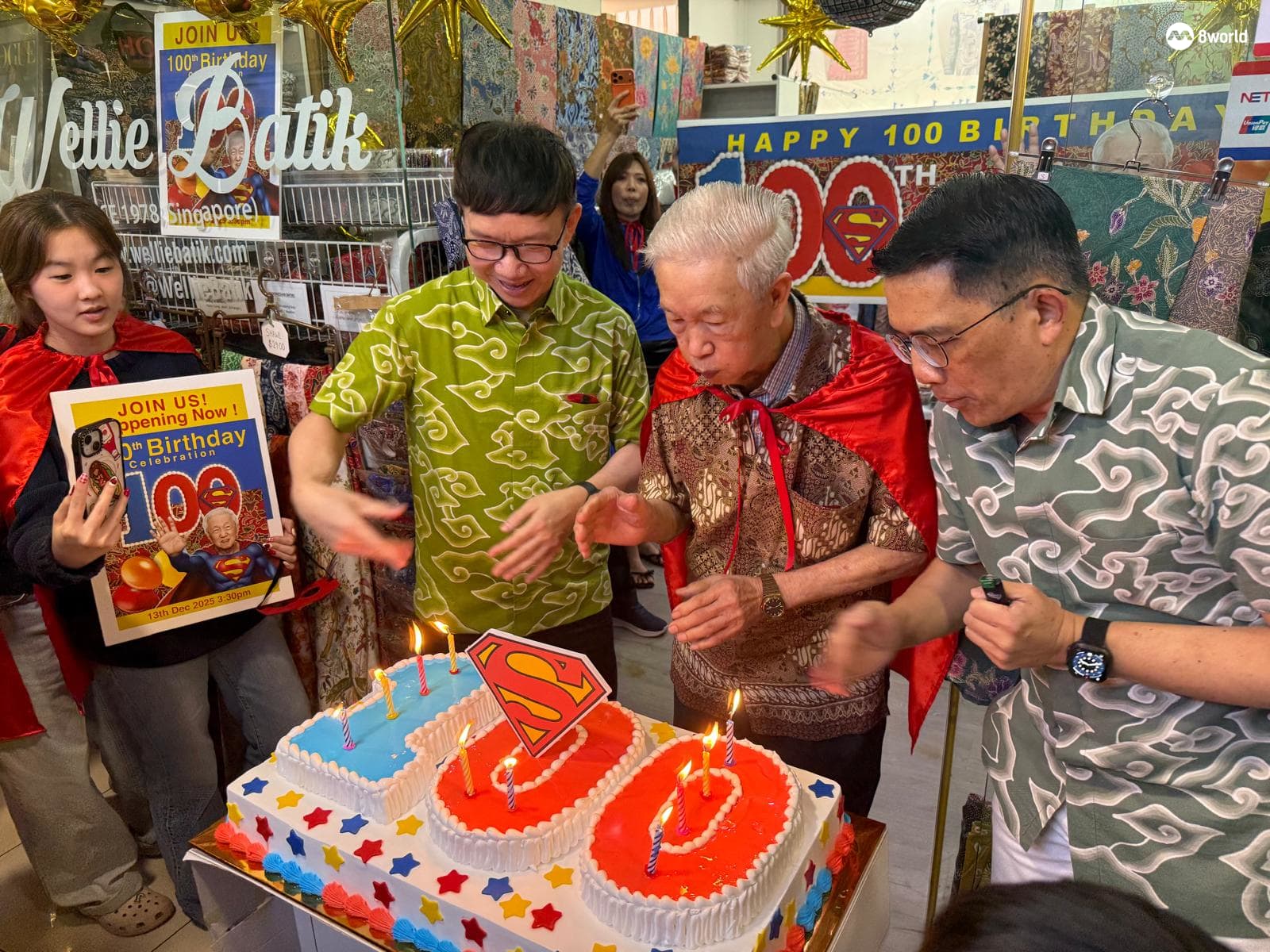 荷兰村老字号峇迪服装店创办人兼裁缝师洪甘祥迎来100岁生日,他的小儿子精心为他在店里举办派对,邀请家人、商家和老顾客等约150人到场祝贺,场面热闹温馨。