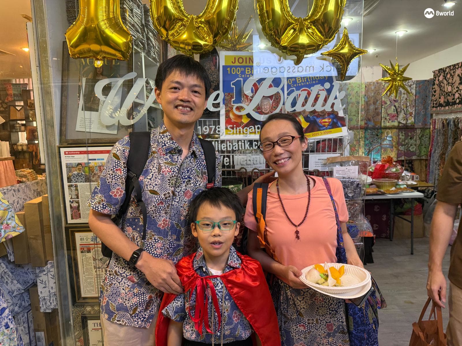 穿着峇迪服装的顾客和洪甘祥互动。(图:叶衍娴)