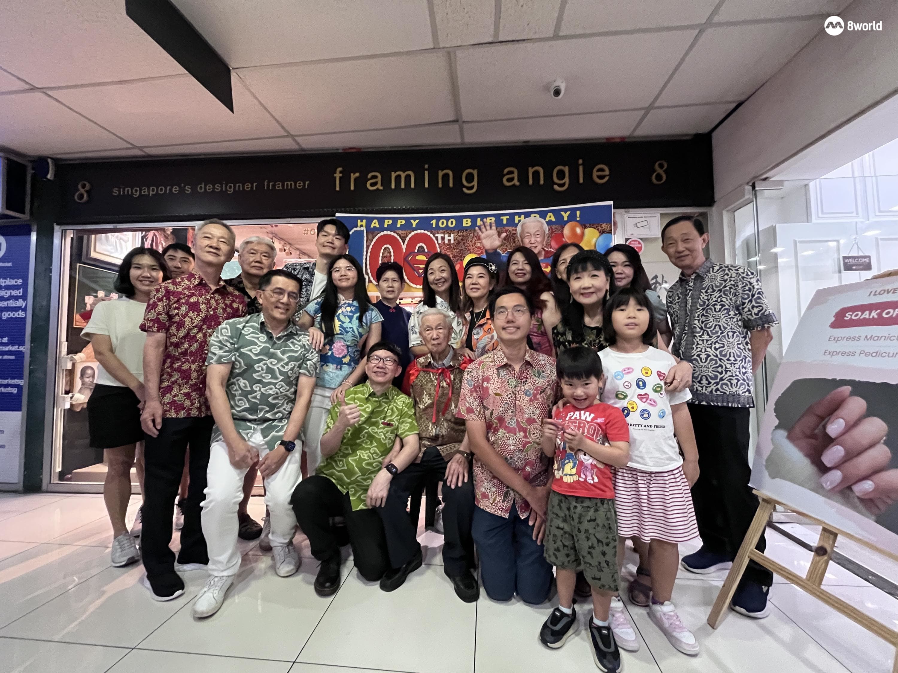 洪甘祥今天(13日)迎来他的100岁农历生日(农历十月廿四),他的56岁小儿子洪联通特地邀请老顾客和商家到位于荷兰路购物中心的店里参加派对,一起庆祝父亲的百岁大寿。